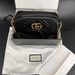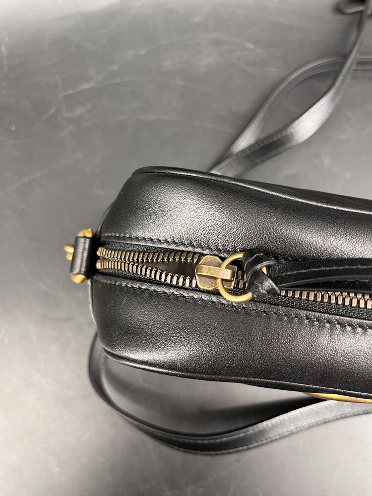 This chic shoulder bag is the Authentic Gucci GG Marmont Camera Bag, crafted in black matelassé chevron leather with antique gold-tone hardware.1 It features the iconic Double G logo on the front and a versatile leather-and-chain strap.2 The item is in good condition. Includes the original box and dust bag. Please review all photos closely to assess cosmetic condition as the item shown is the exact one you will receive.