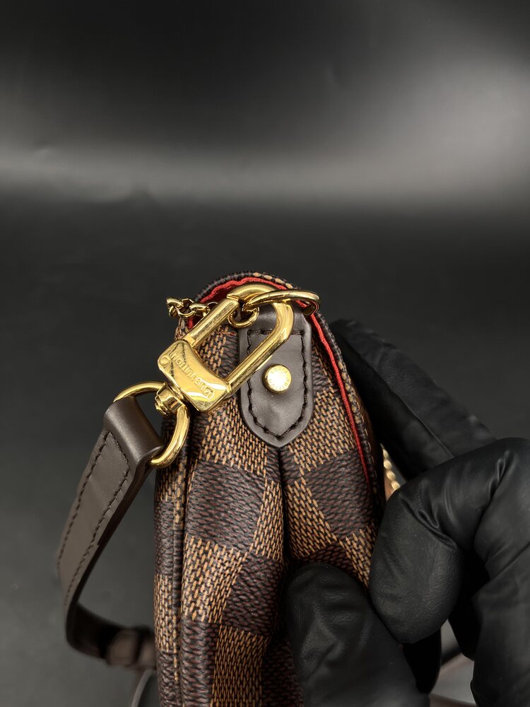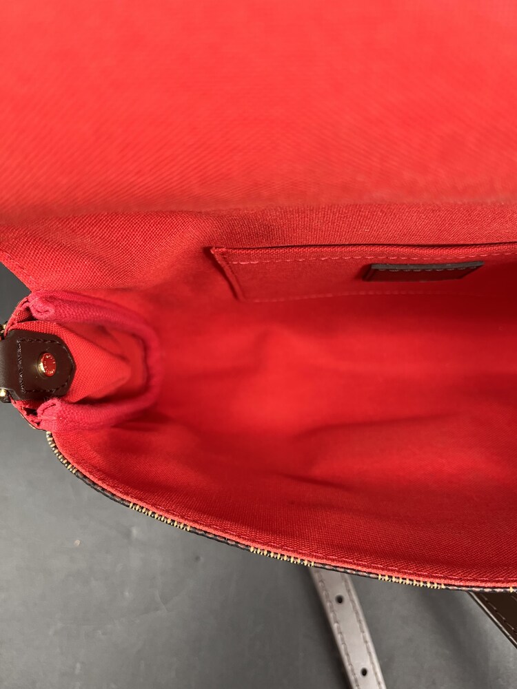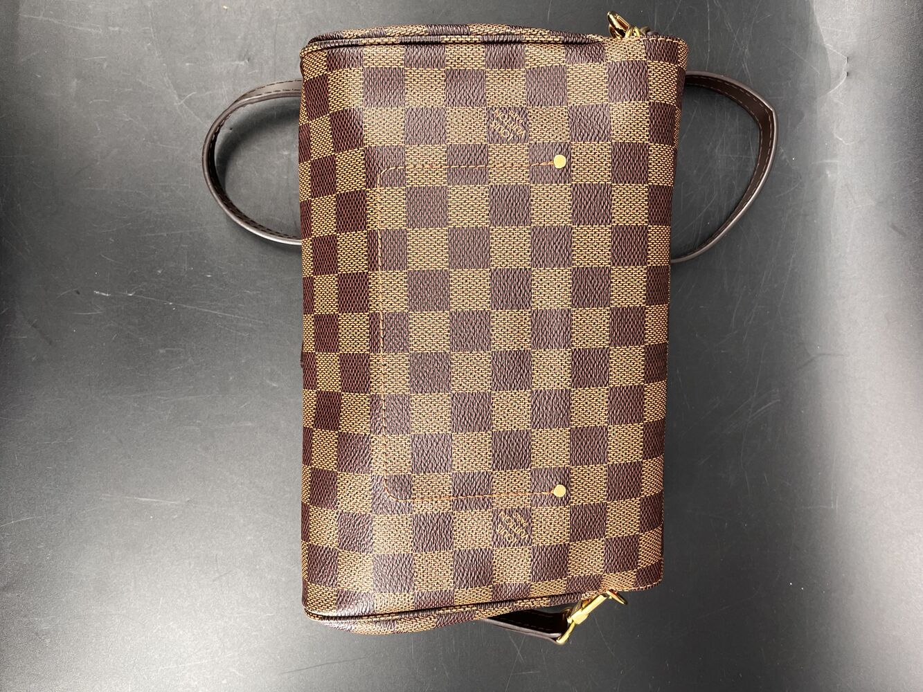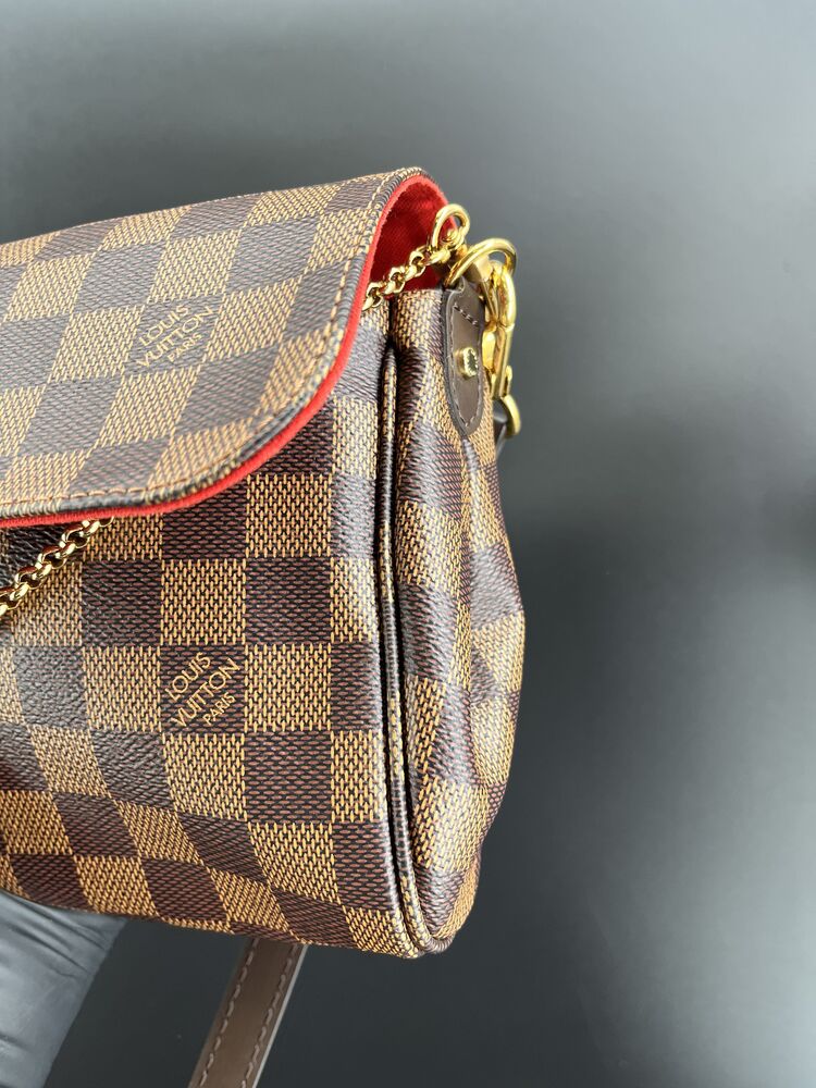 This stylish bag is the authentic Louis Vuitton Favorite MM, crafted in the signature Damier Ebene coated canvas. It features a magnetic flap closure and gold-tone hardware. Versatile in design, it can be worn as a crossbody, shoulder bag, or clutch. The item is in good condition with normal signs of use. Please review all photos closely to assess cosmetic condition as the item shown is the exact one you will receive. Please note: This item does not come with a box or dust bag.