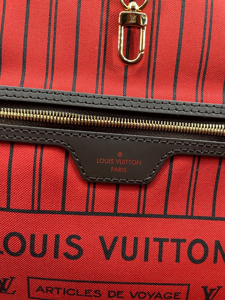 Este lujoso bolso tote es el auténtico Louis Vuitton Neverfull GM, elaborado en la clásica lona revestida Damier Ebene con ribetes de cuero marrón. Este es el tamaño más grande de la colección Neverfull e incluye la bolsa con cremallera extraíble a juego (pouch). El artículo está en excelentes condiciones. Viene con la bolsa guardapolvo original y el pouch. Por favor revise todas las fotos detenidamente para evaluar la condición cosmética, ya que el artículo que se muestra es exactamente el que recibirá. Tenga en cuenta: Este artículo no viene con caja.