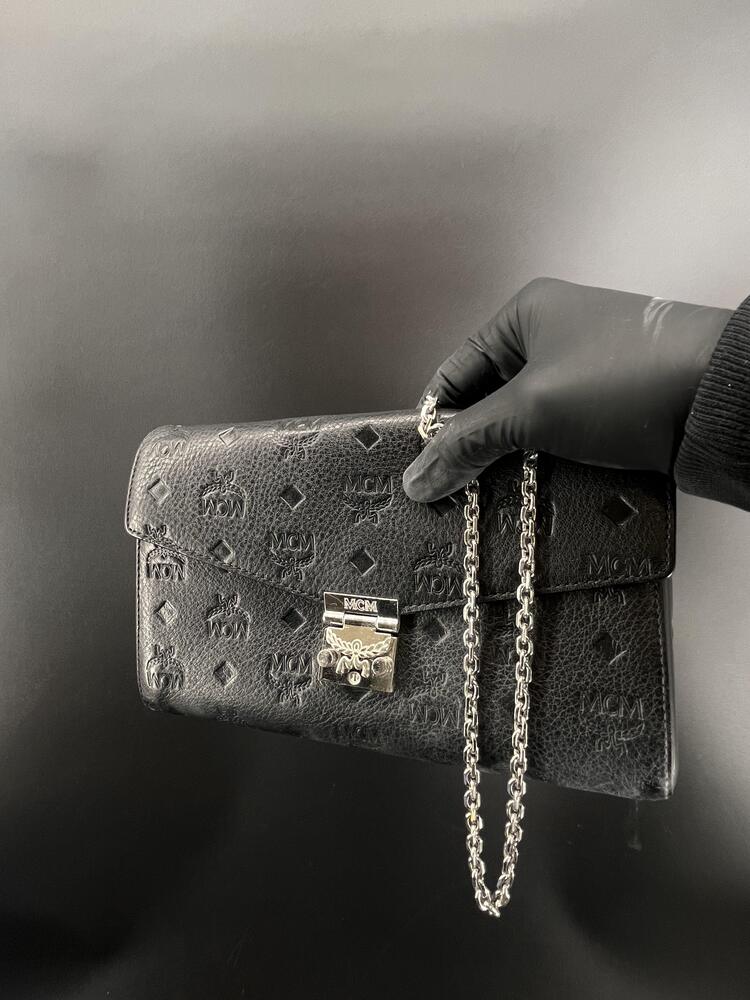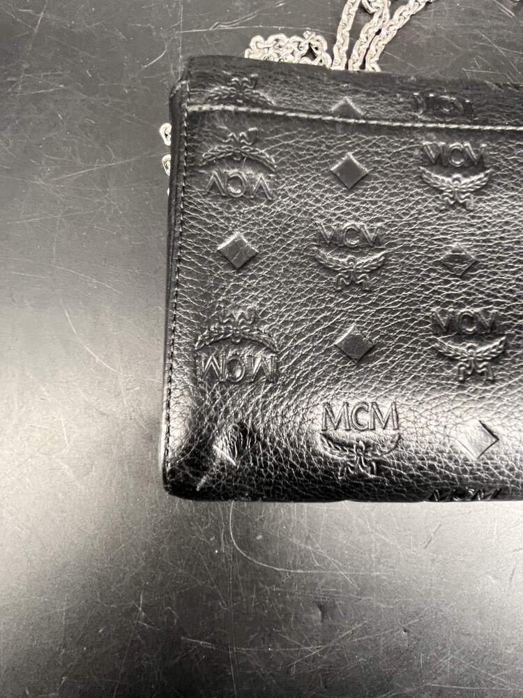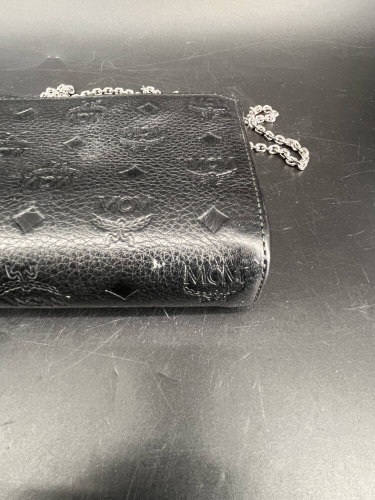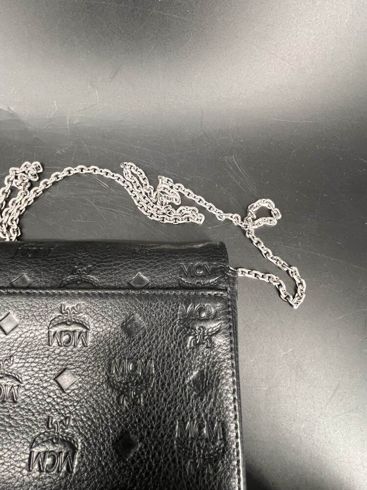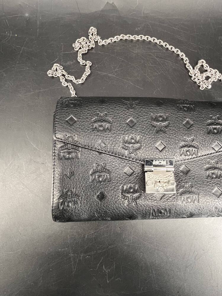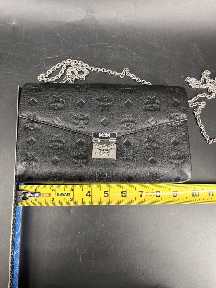 This authentic MCM Medium Chain Wallet is crafted from high-quality leather and doubles as a chic crossbody bag. It features a chain strap for versatile styling and a well-organized interior for your essentials. The item is in good condition. Please note that the original box and dust bag are not included. Please review all photos closely to assess cosmetic condition as the item shown is the exact one you will receive.