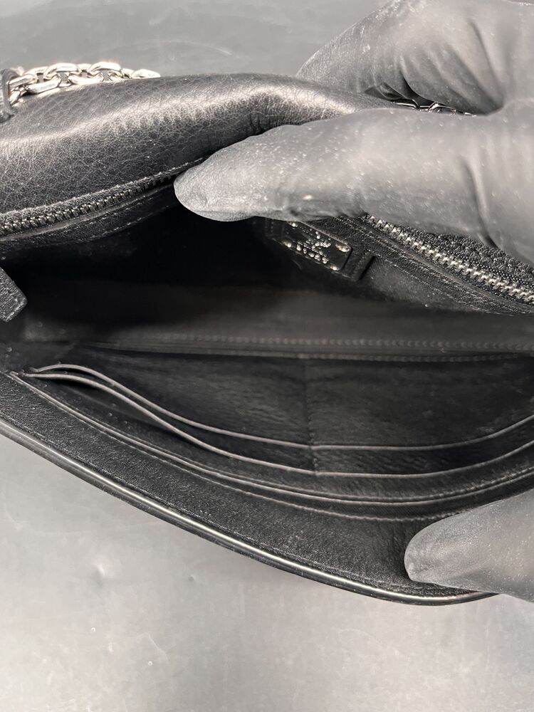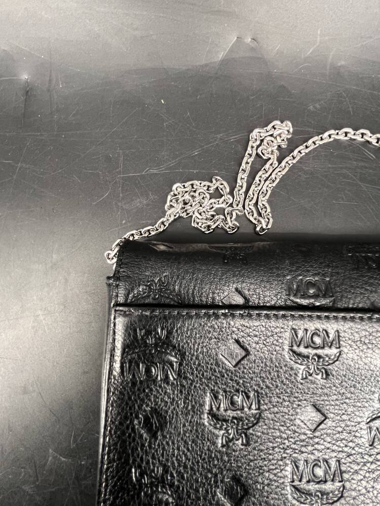 Esta auténtica cartera con cadena mediana MCM está hecha de cuero de alta calidad y funciona también como un elegante bolso cruzado. Cuenta con una correa de cadena para un estilo versátil y un interior bien organizado para sus artículos esenciales. El artículo está en buenas condiciones. Tenga en cuenta que la caja original y la bolsa guardapolvo no están incluidas. Por favor revise todas las fotos detenidamente para evaluar la condición cosmética, ya que el artículo que se muestra es exactamente el que recibirá.