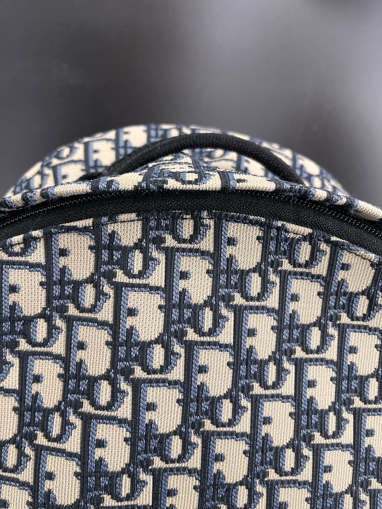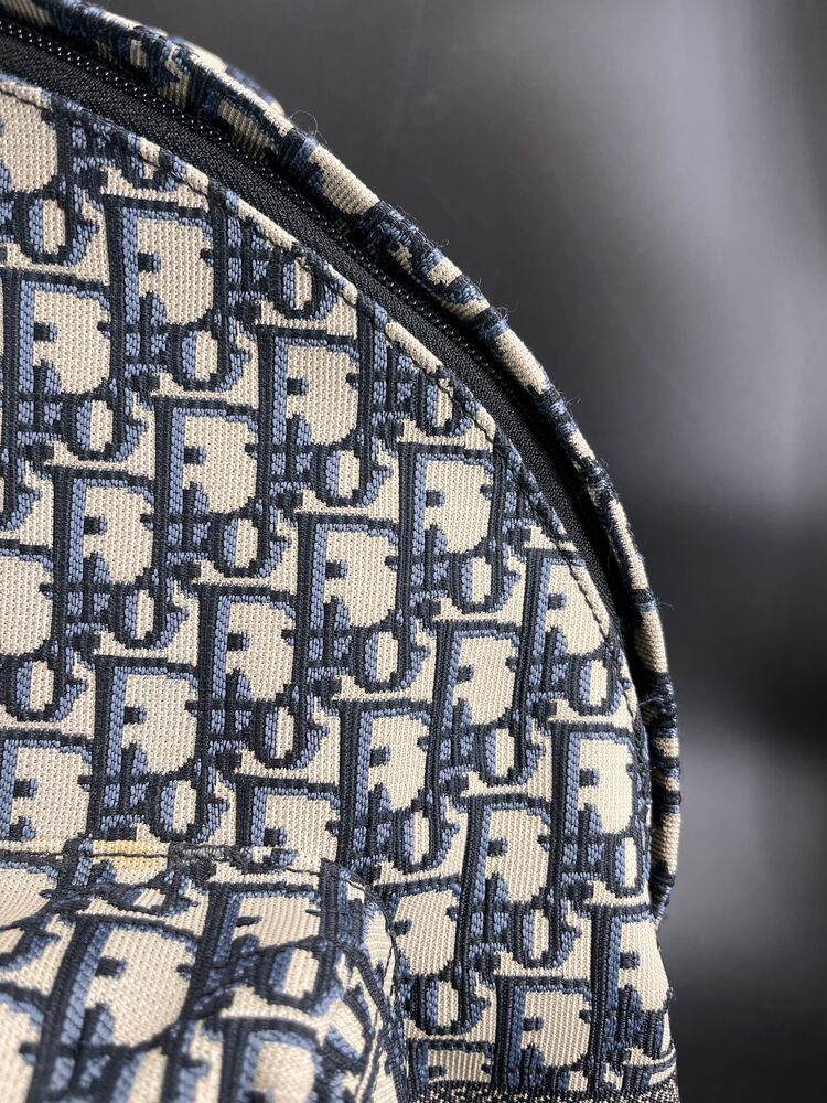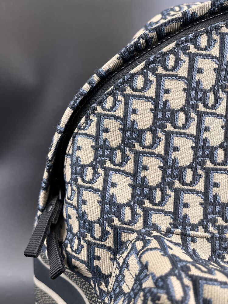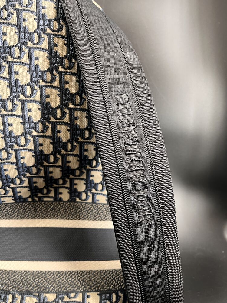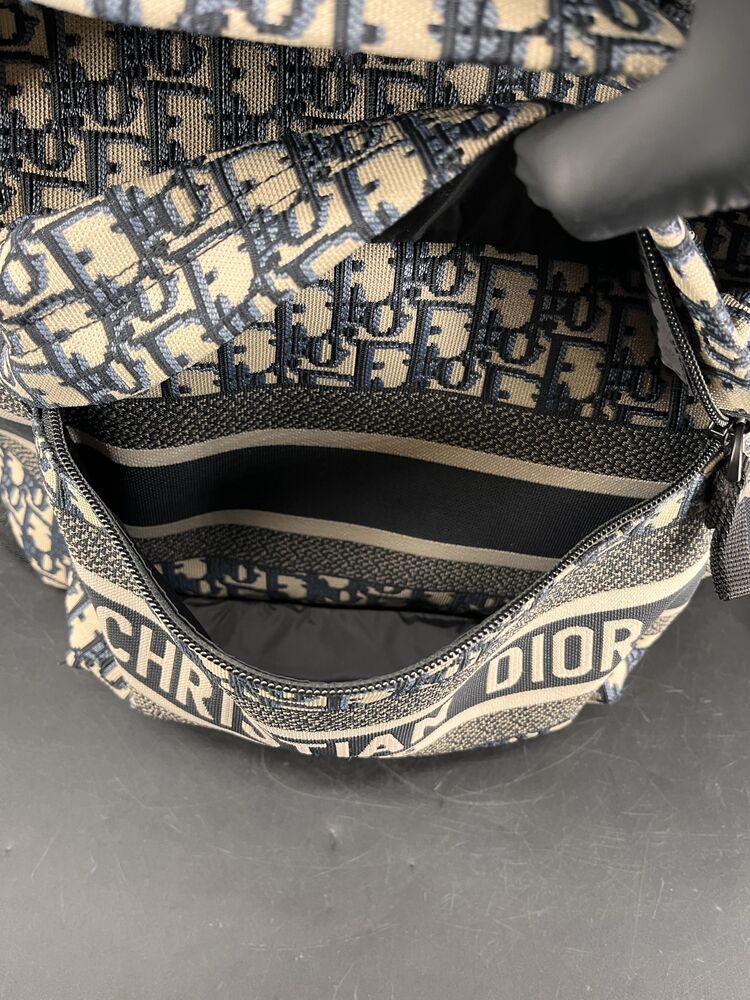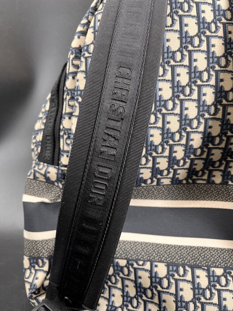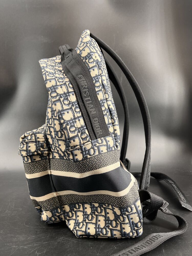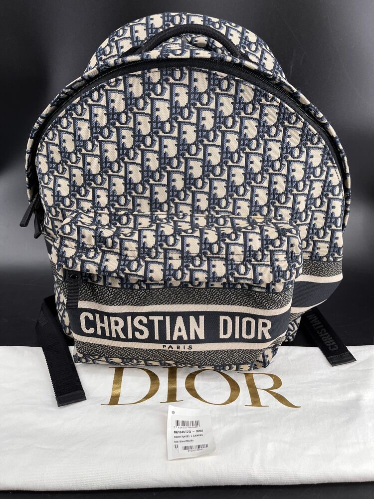 This stylish Christian Dior Homme Rider Backpack is crafted from the iconic beige and blue Dior Oblique jacquard canvas. It features a spacious main compartment, a front zippered pocket for easy access, and adjustable padded shoulder straps for comfort. It combines luxury with everyday functionality. The listing includes the original dust bag; the box is not included. The item is in good condition. Please review all photos closely to assess cosmetic condition as the item shown is the exact one you will receive.
