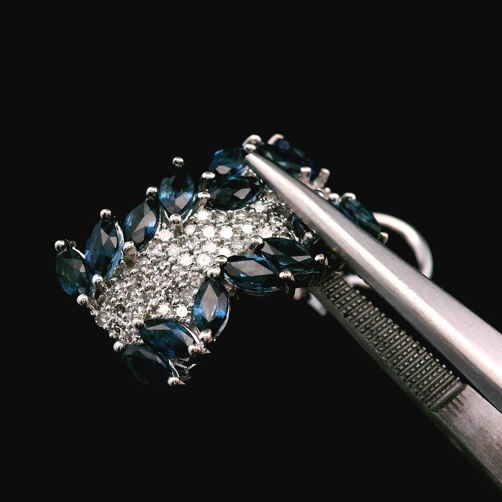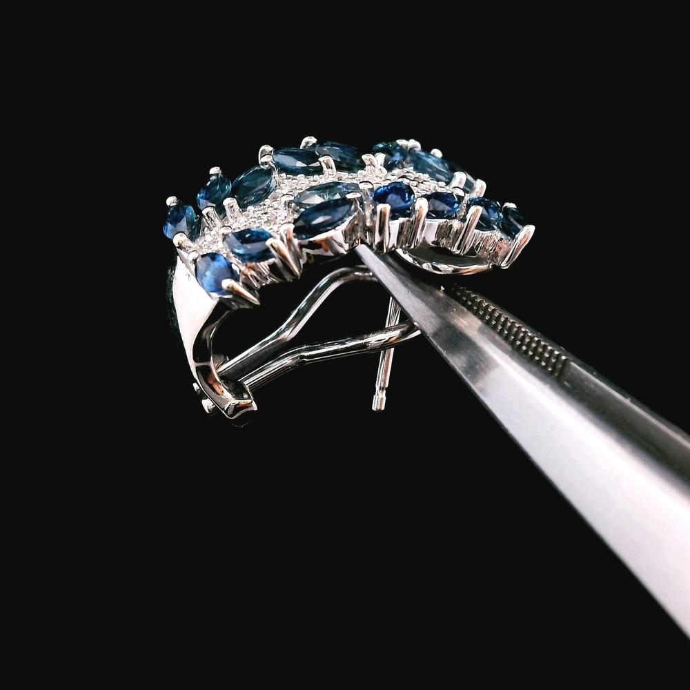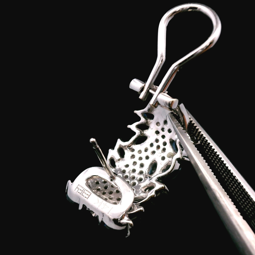 Item Description: This stunning pair of earrings is crafted in 14K white gold by designer EFFY and features rich Sapphires accented by approximately 1/2 CTTW of sparkling diamonds. They have a total weight of 5.2 dwt (approximately 8.1 grams). The item is in good condition. Please review all photos closely to assess cosmetic condition and the natural characteristics of the stones as the item shown is the exact one you will receive. Please note: Price may vary depending on the price of gold and silver.