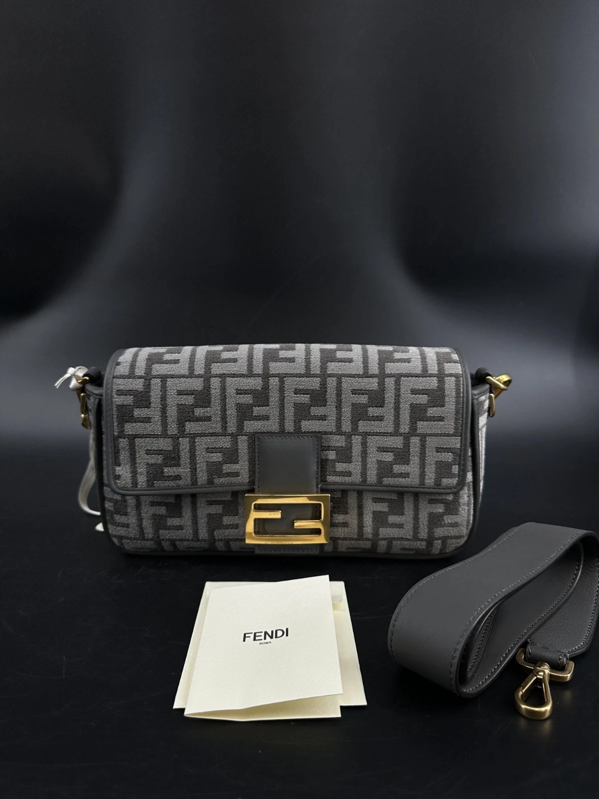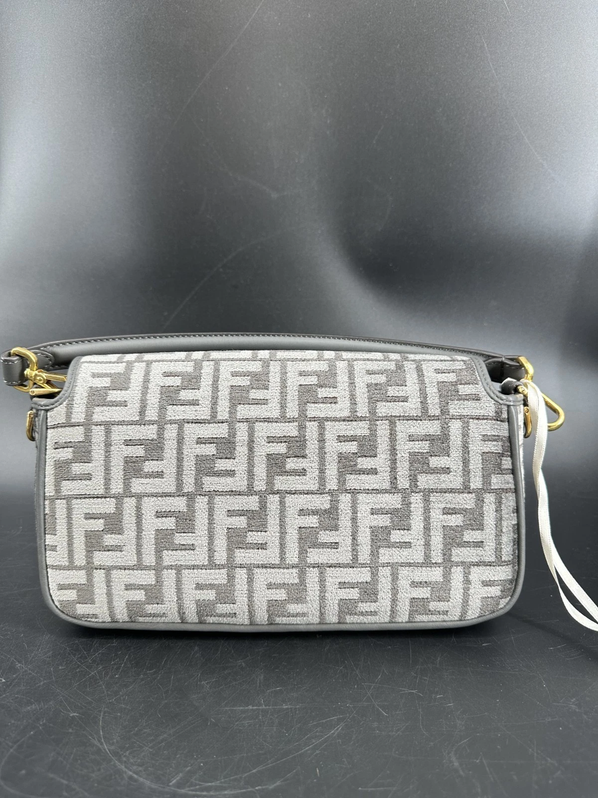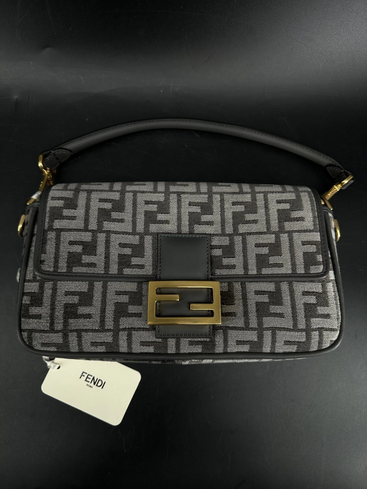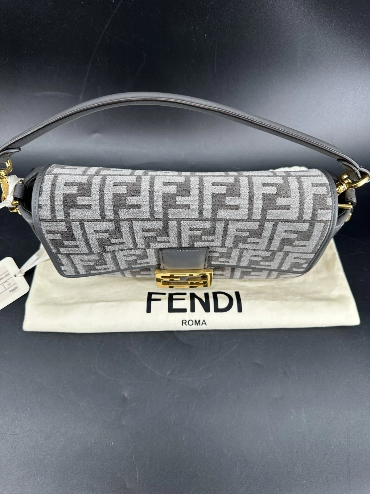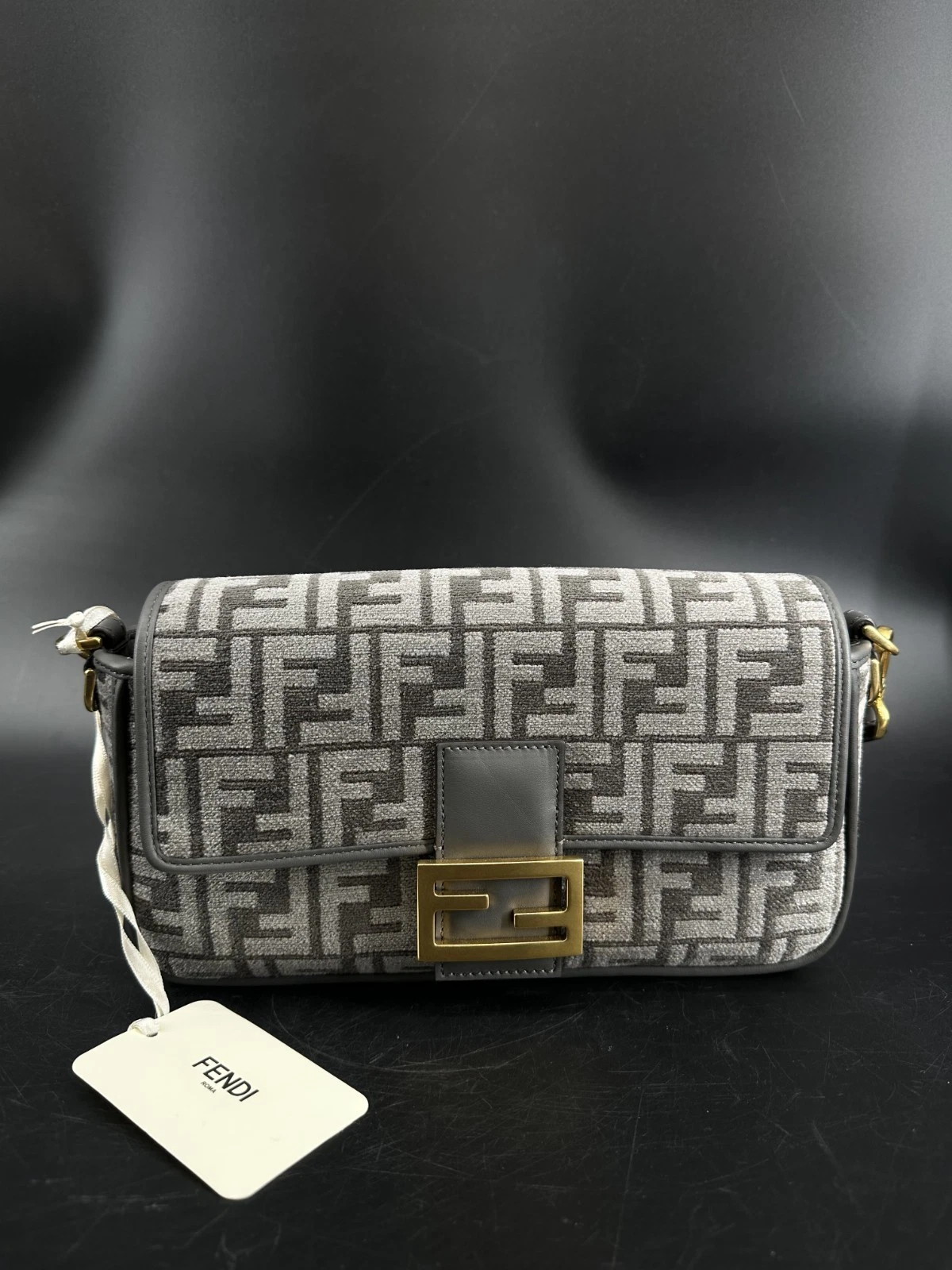 Fendi Baguette Grey Logo Canvas Shoulder Bag – Brand New