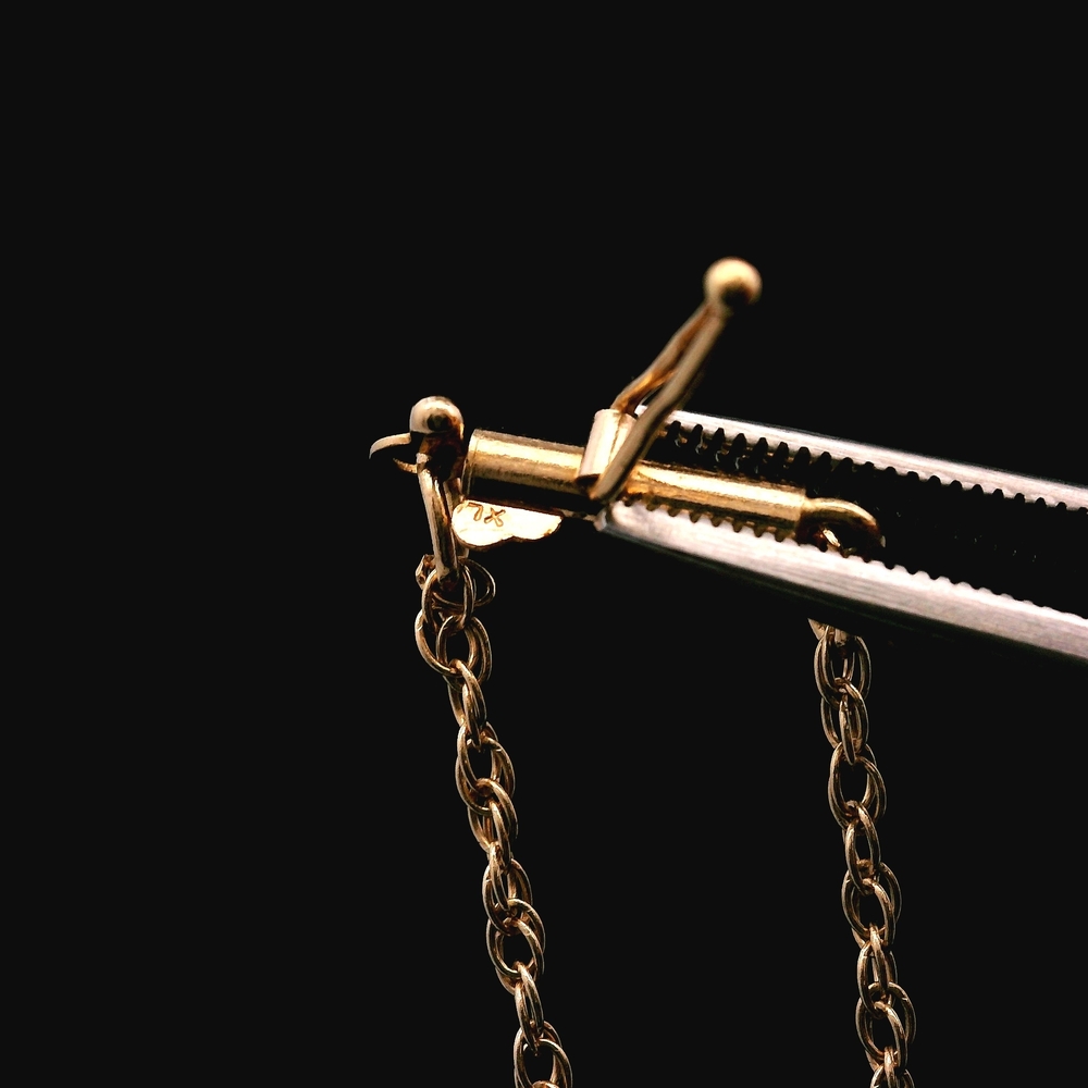 La pulsera mide 8 pulgadas, con un peso total de 29.60 DWT (46.03 gramos).