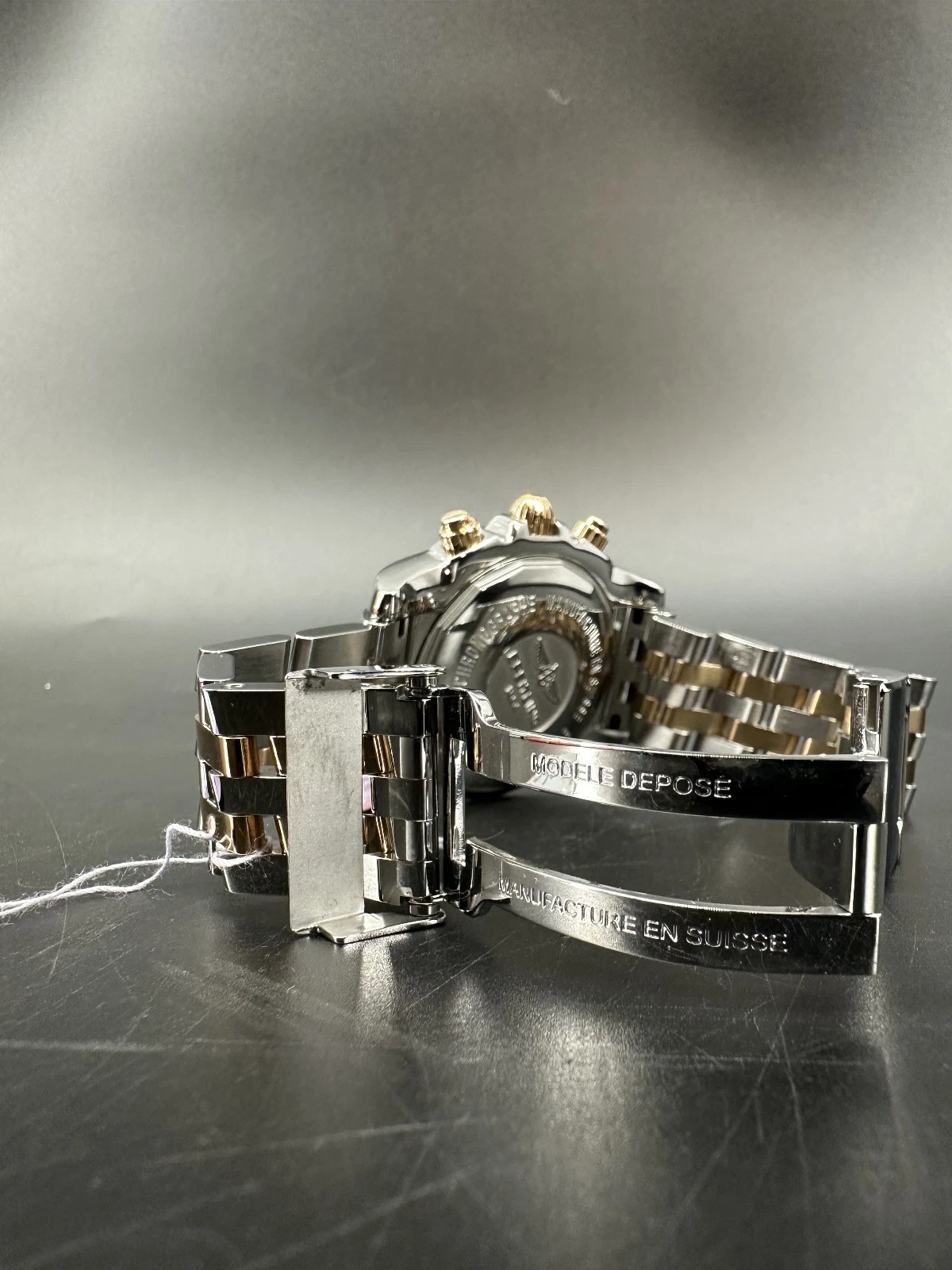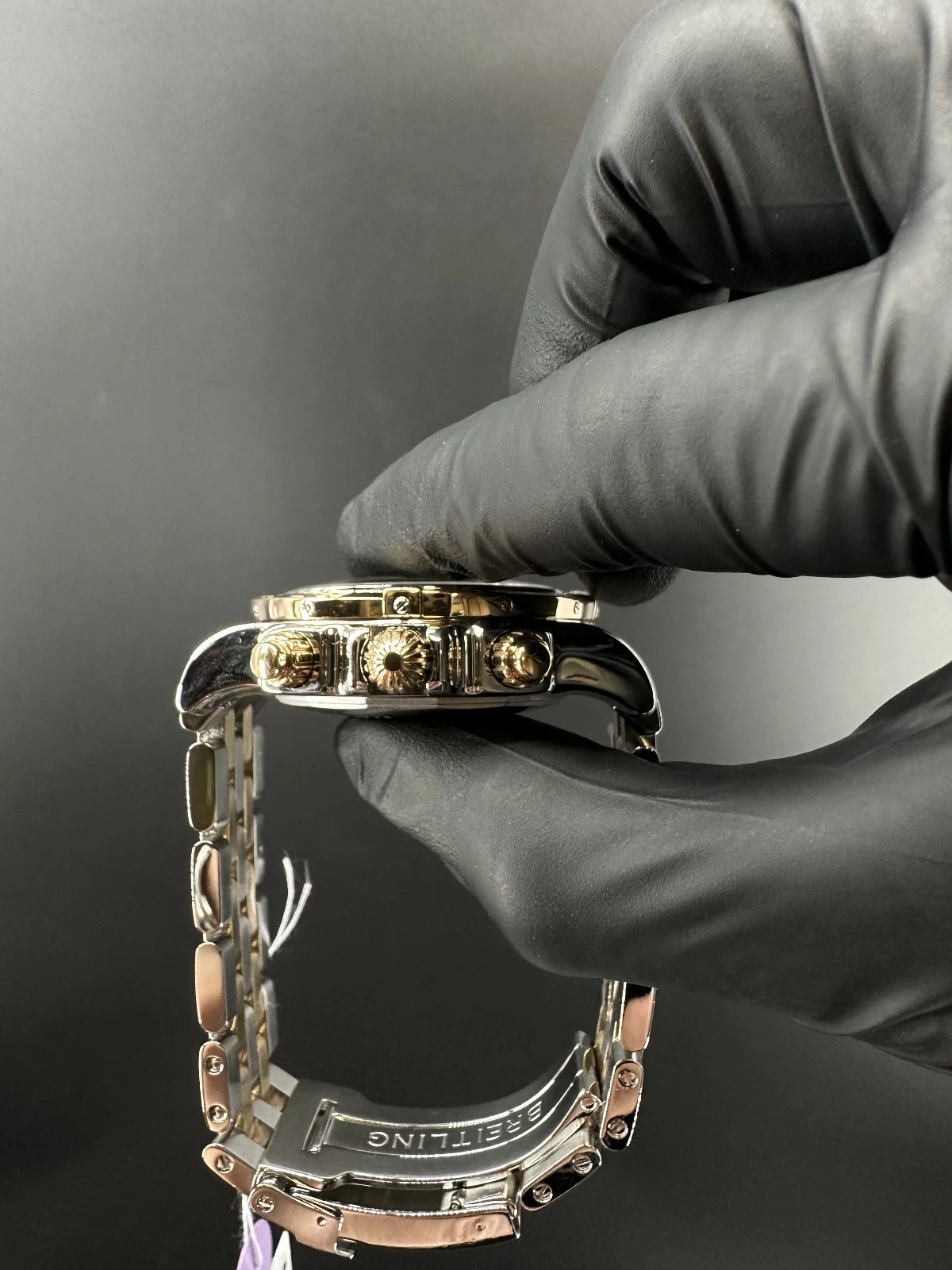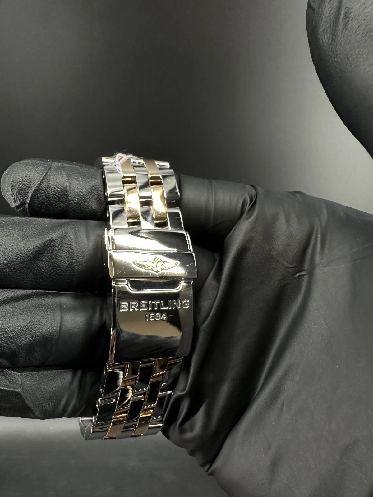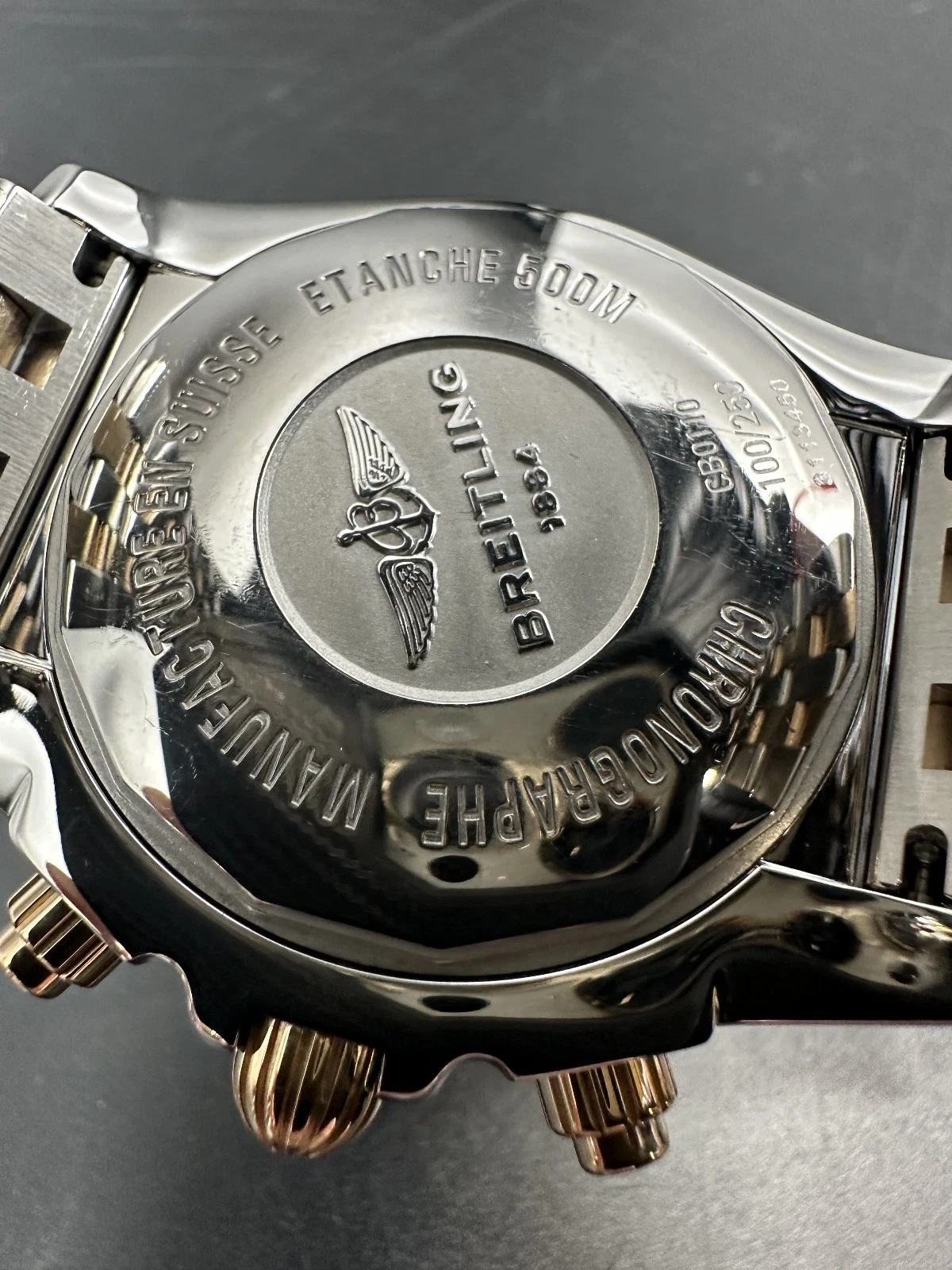 Este es un Breitling Chronomat 44 Edición Limitada, referencia CB0110, fabricado en acero inoxidable y oro rosa de 18K. Esta pieza es la número 100 de solo 250 unidades producidas, lo que la convierte en un reloj raro y altamente coleccionable.