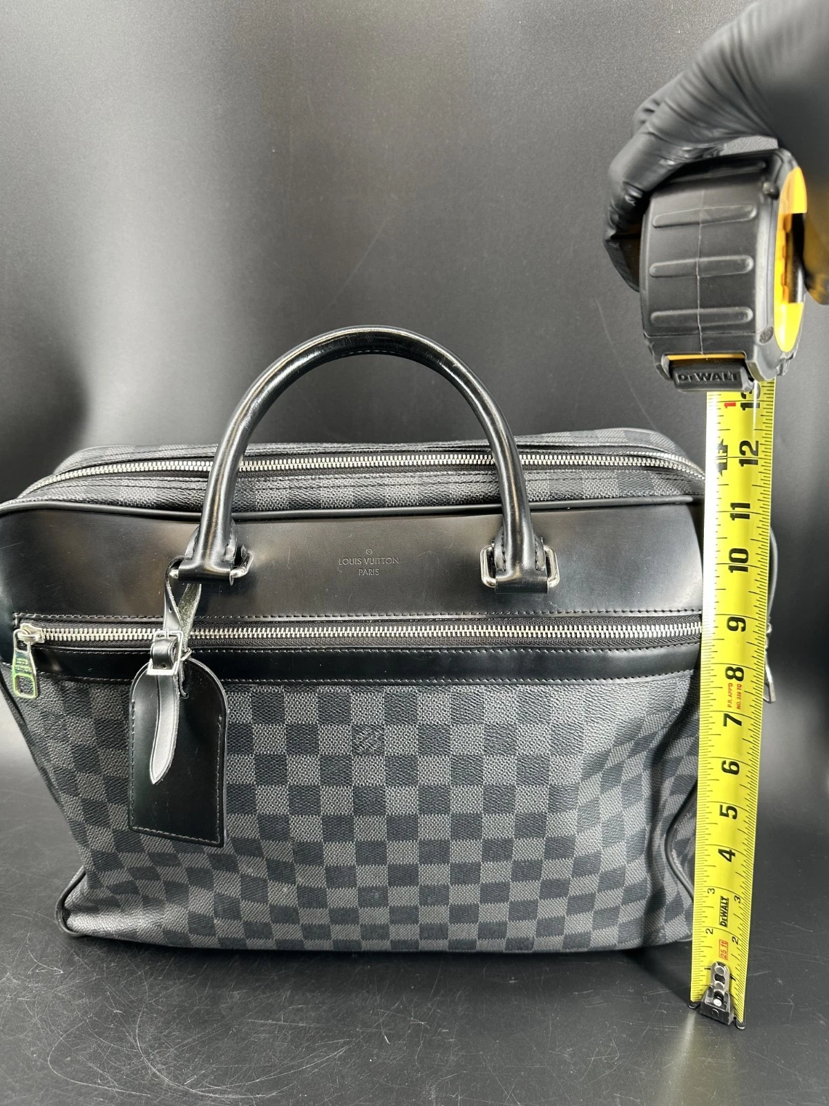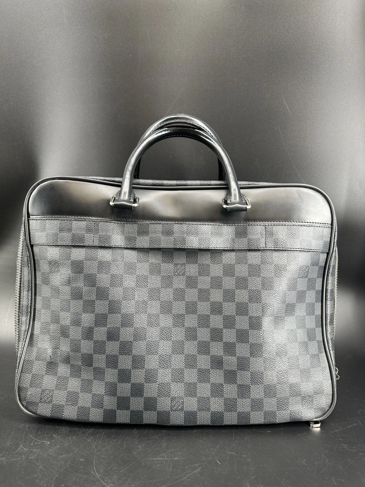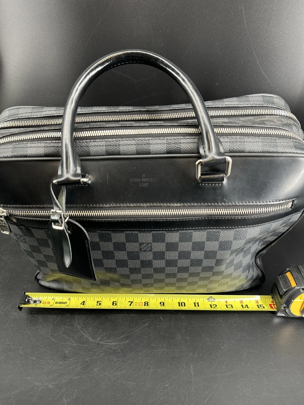 The Louis Vuitton Porte Documents Voyage Business Bag in Damier Graphite is a sophisticated and functional accessory crafted from the iconic Damier Graphite canvas with leather trim. Featuring a spacious interior with multiple compartments, a secure zipper closure, and adjustable shoulder strap, this bag is ideal for professionals seeking style and practicality. Perfect for carrying documents, laptops, or essentials in a sleek, timeless design.