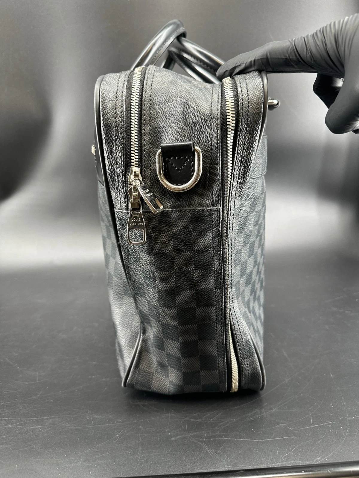 El bolso de negocios Louis Vuitton Porte Documents Voyage en Damier Graphite es un accesorio sofisticado y funcional confeccionado con el icónico lienzo Damier Graphite y ribetes de cuero. Con un interior espacioso con múltiples compartimentos, un cierre de cremallera seguro y una correa de hombro ajustable, este bolso es ideal para profesionales que buscan estilo y practicidad. Perfecto para llevar documentos, laptops o esenciales en un diseño elegante y atemporal.