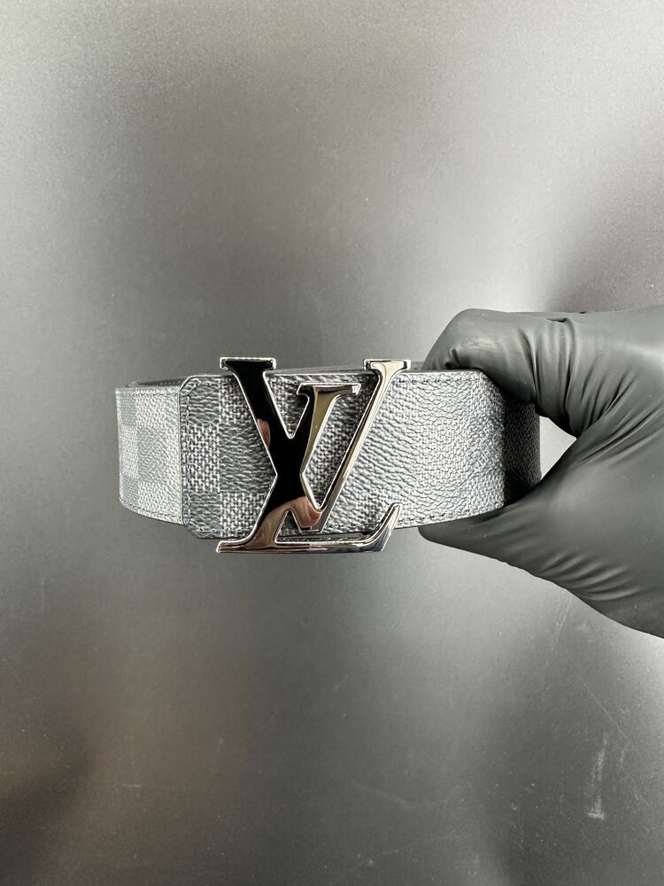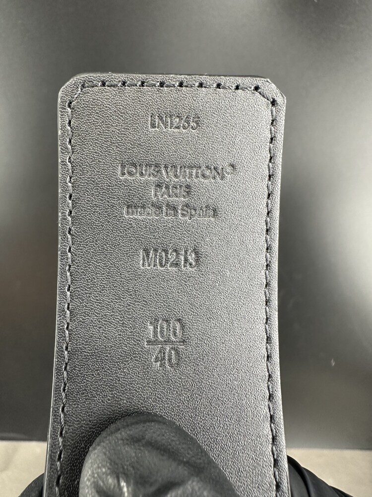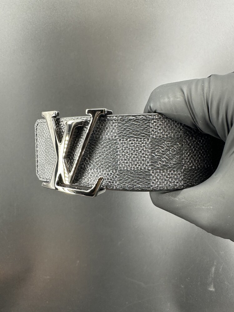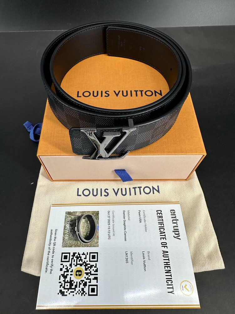 This authentic Louis Vuitton LV Initiales 40mm Reversible Belt offers two premium looks in one design. One side features the iconic Damier Graphite canvas, while the reverse side is crafted from supple calf leather for a sleek, understated style. The signature LV Initials buckle adds a bold finishing touch.
