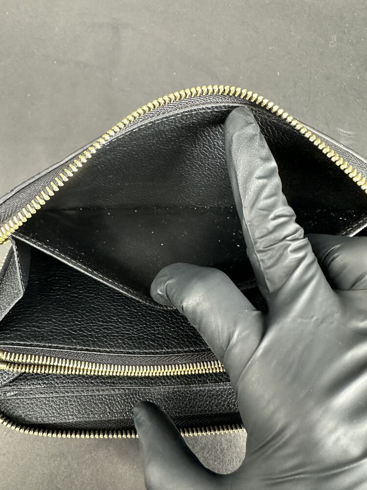The Louis Vuitton M61864 Zippy Wallet in black Monogram Empreinte leather is the gold-standard of luxury organizers.