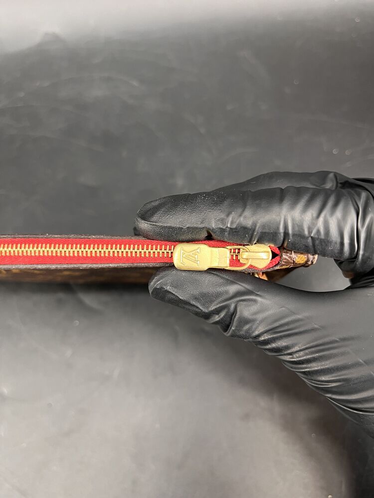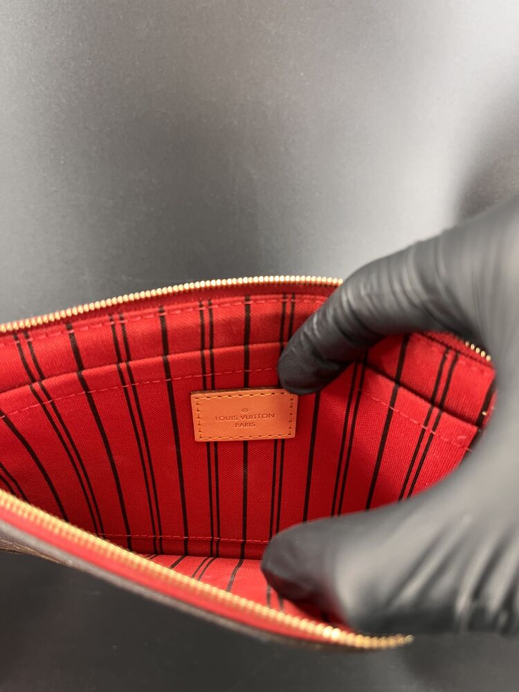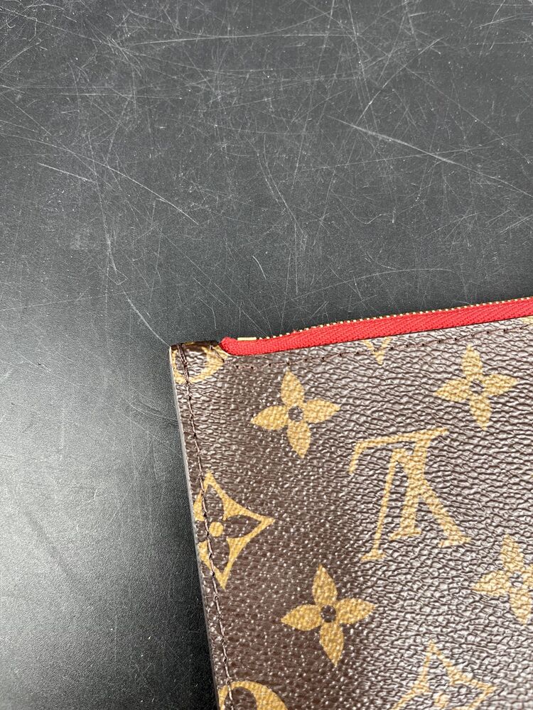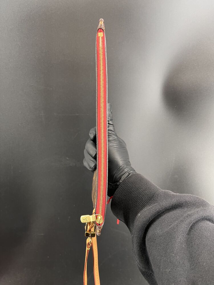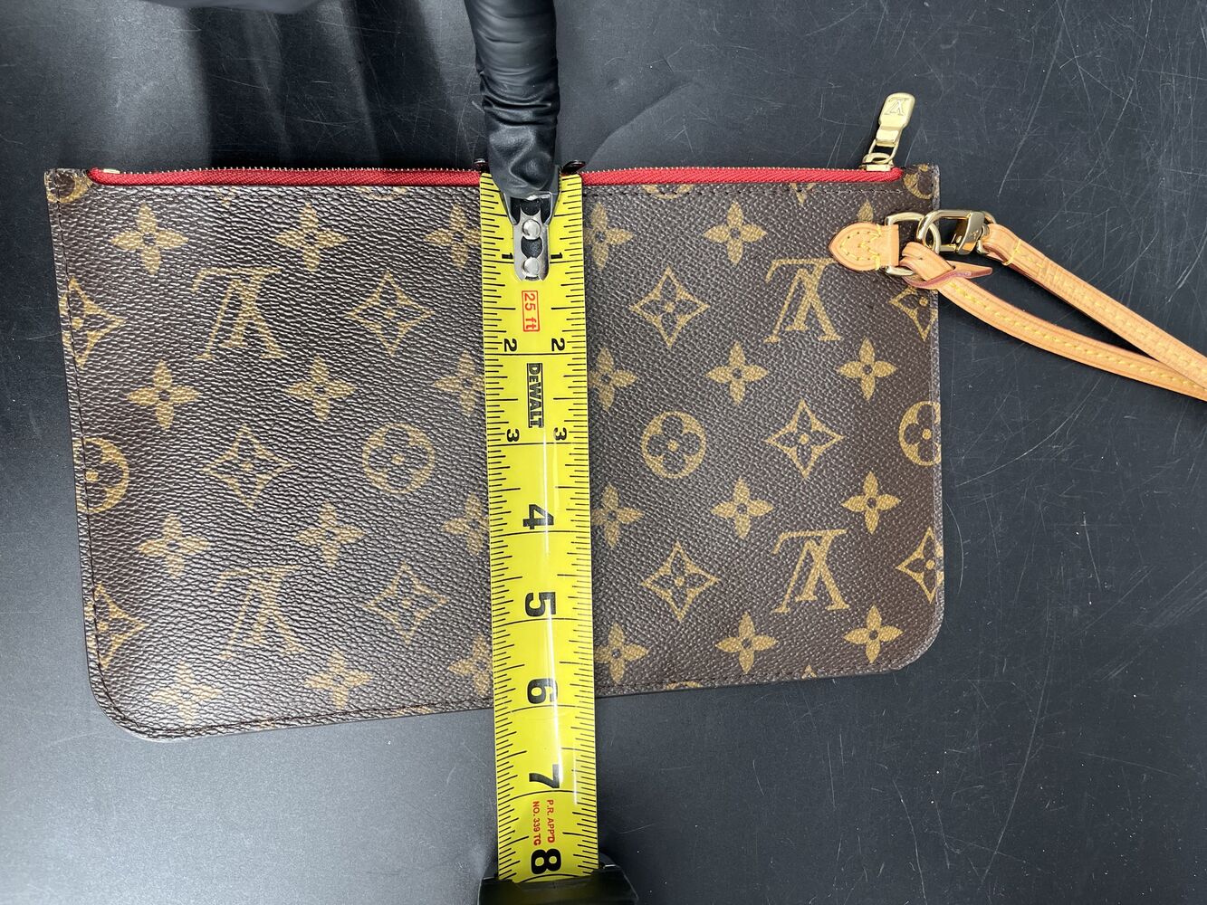 This is the versatile and highly sought-after zipper pochette originally sold with the Louis Vuitton Neverfull MM tote. It is perfect for use as a standalone wristlet, a clutch for an evening out, or a cosmetic pouch inside a larger bag.