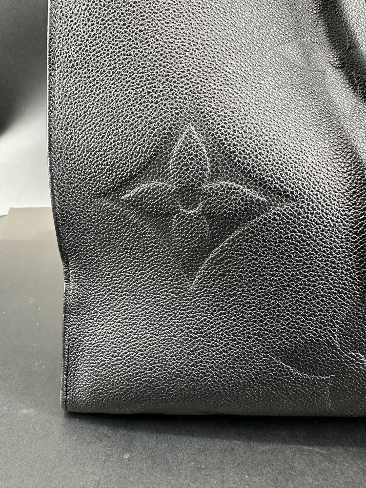 The Louis Vuitton ONTHEGO GM (M44925) in Black Monogram Empreinte leather is the ultimate oversized luxury tote. Measuring 41 x 34 x 19 cm, it features embossed giant Monogram, dual rolled leather handles, a removable shoulder strap, and gold-tone hardware. Two interior flat pockets + one zip pocket keep you organized, while the spacious microfiber-lined interior swallows laptops, files, and daily essentials. Perfect for work, travel, or chic errands.