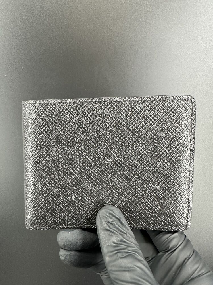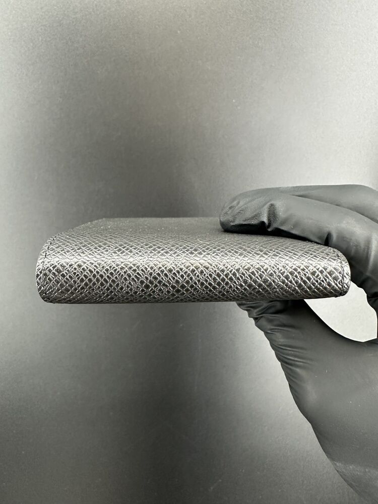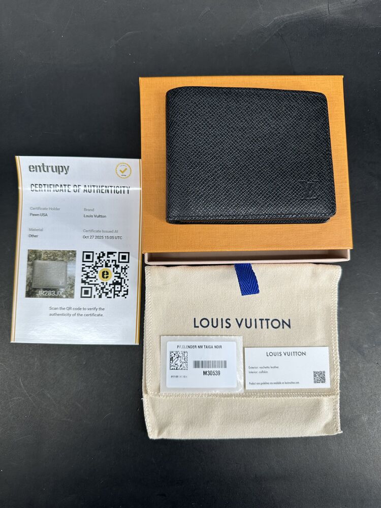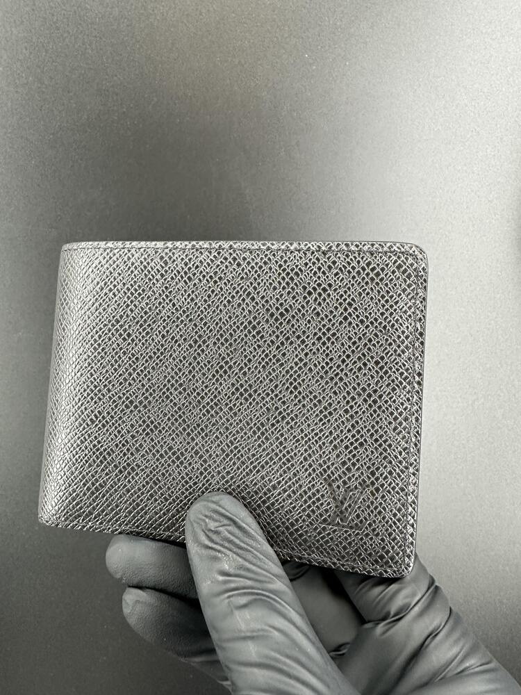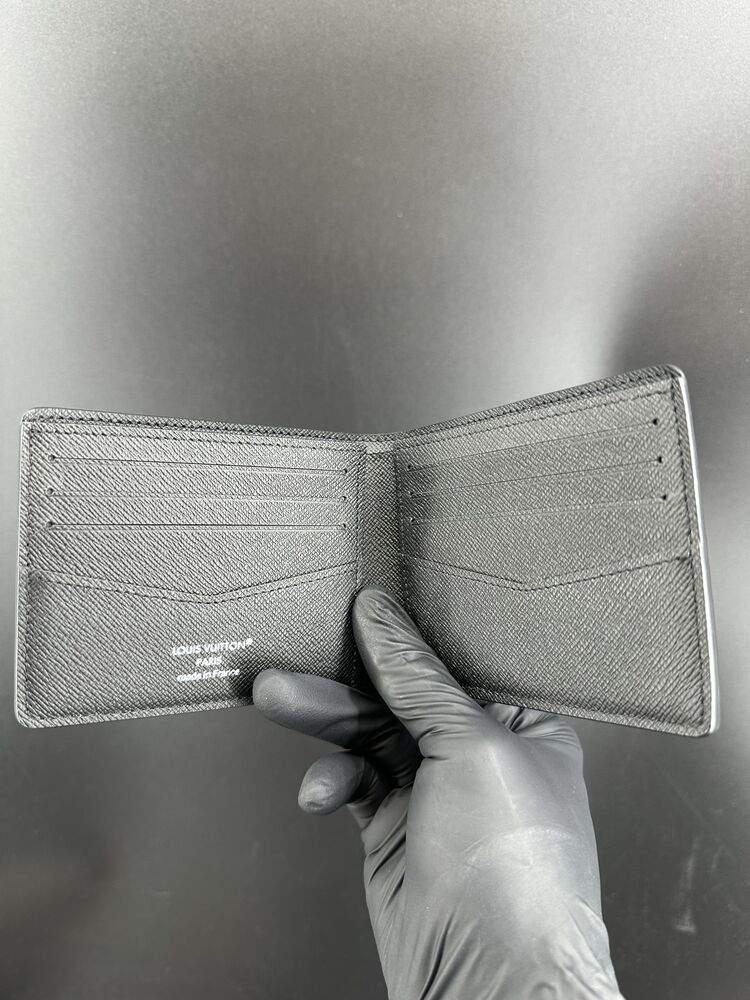 This authentic Louis Vuitton Slender Wallet (M30539) is crafted in Taiga Noir leather, known for its refined texture and durable finish. The slim profile fits comfortably in pockets while offering practical storage with multiple card slots and a bill compartment.