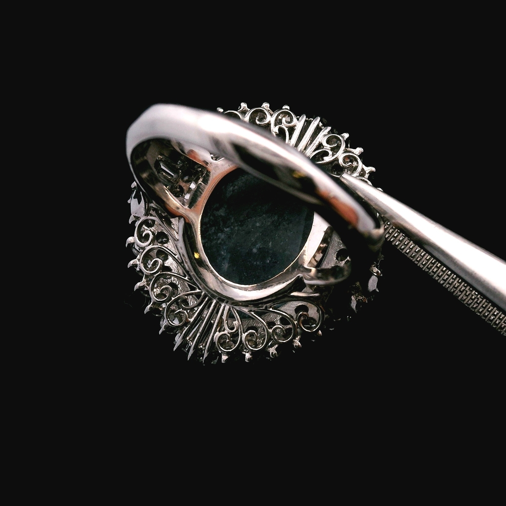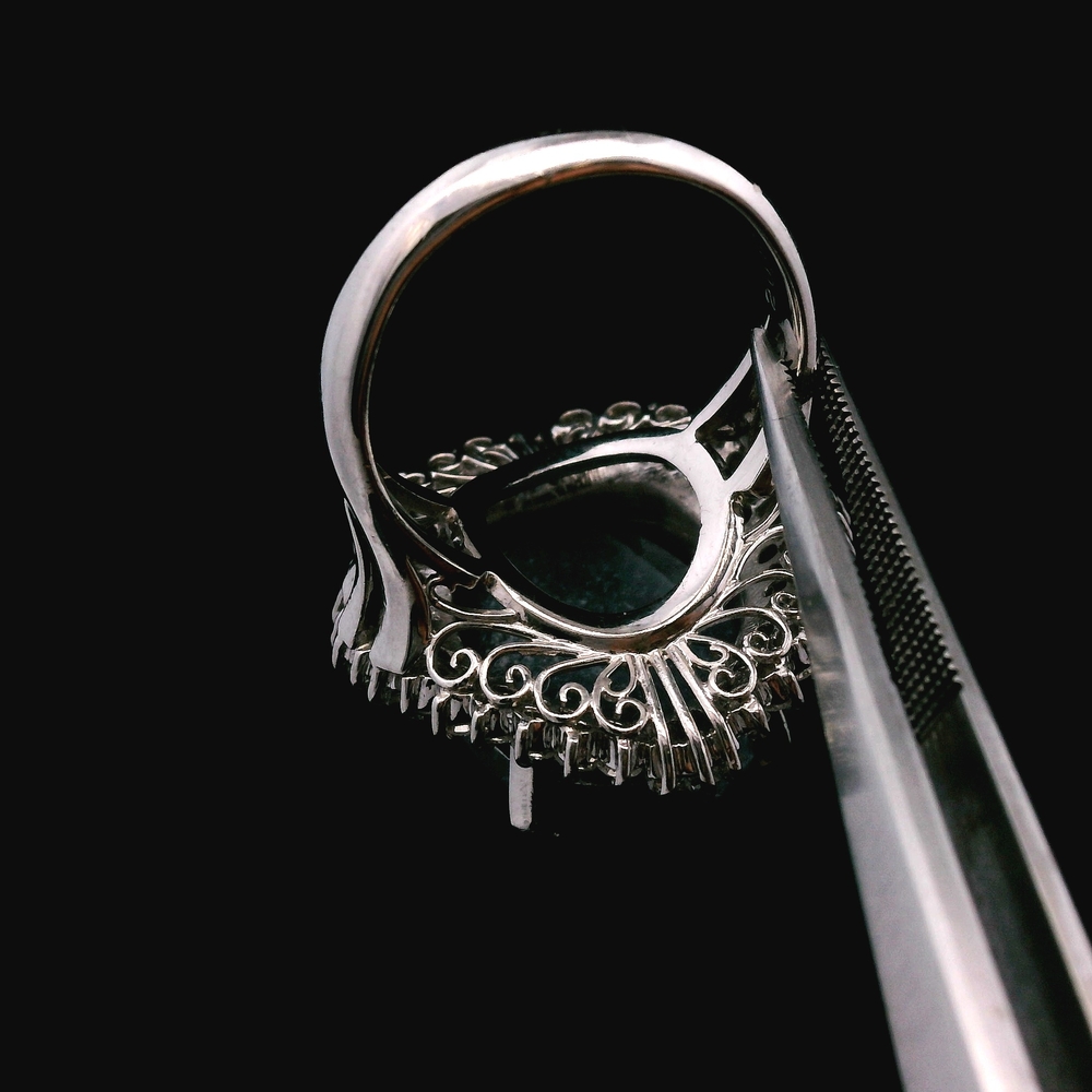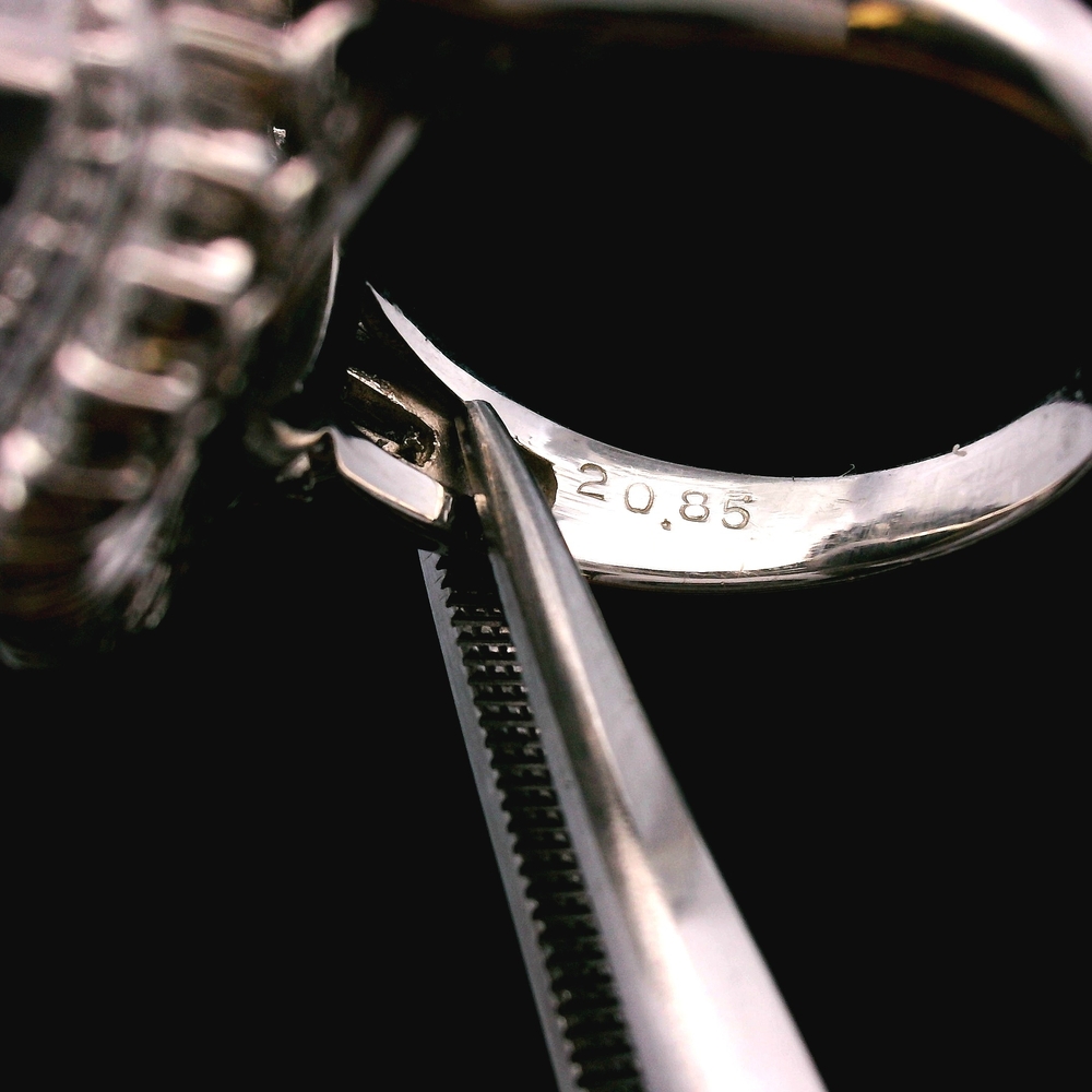 Shows light wear consistent with normal use. Stone and diamonds are secure; platinum band is solid with no structural issues.