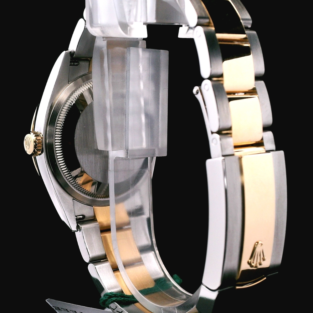 Este Rolex Datejust 36mm (Ref. 126233) presenta una construcción en acero inoxidable y oro amarillo de 18K, con bisel estriado y esfera color champaña. Un diseño clásico y reconocido por su estilo elegante y atemporal.