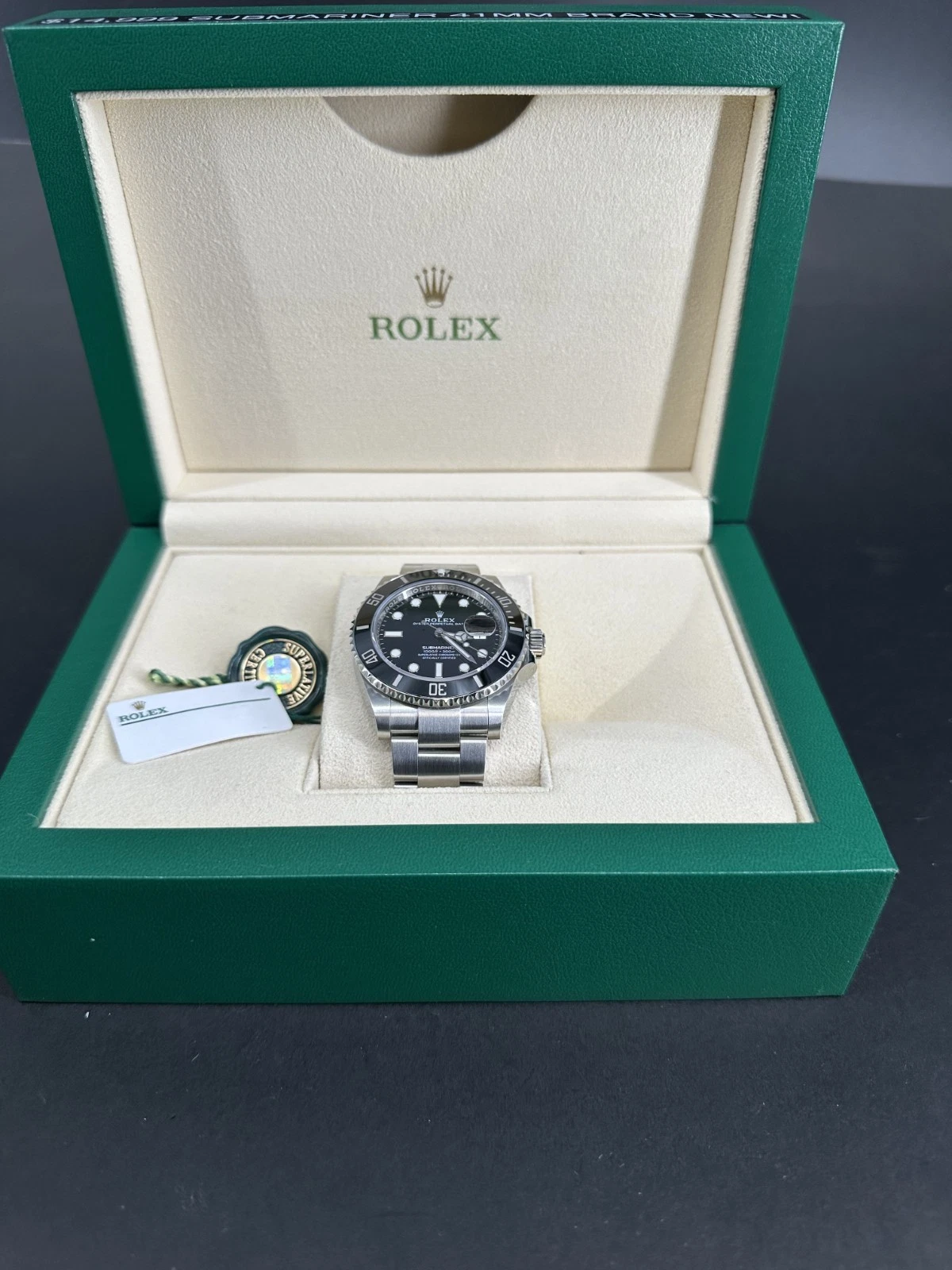 This Rolex Submariner 126610LN features a 41mm stainless steel case with a sleek black dial and ceramic bezel. The watch is in brand new, never-worn condition and includes its original Rolex box, factory tags, and casing. While the casing shows some light scratches from storage, the watch itself has not been worn. This timepiece does not come with papers. A highly sought-after model, the Submariner combines Rolex’s legendary craftsmanship with timeless design, making it an exceptional addition to any collection.