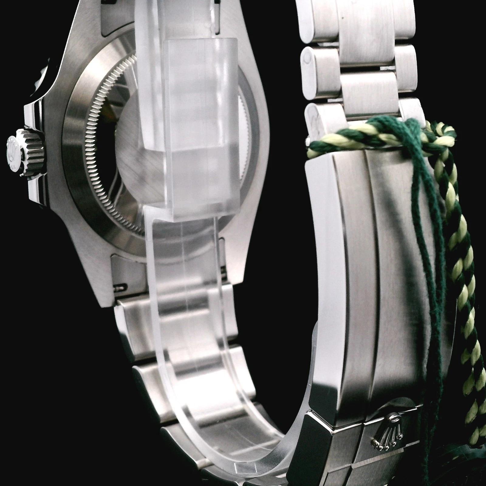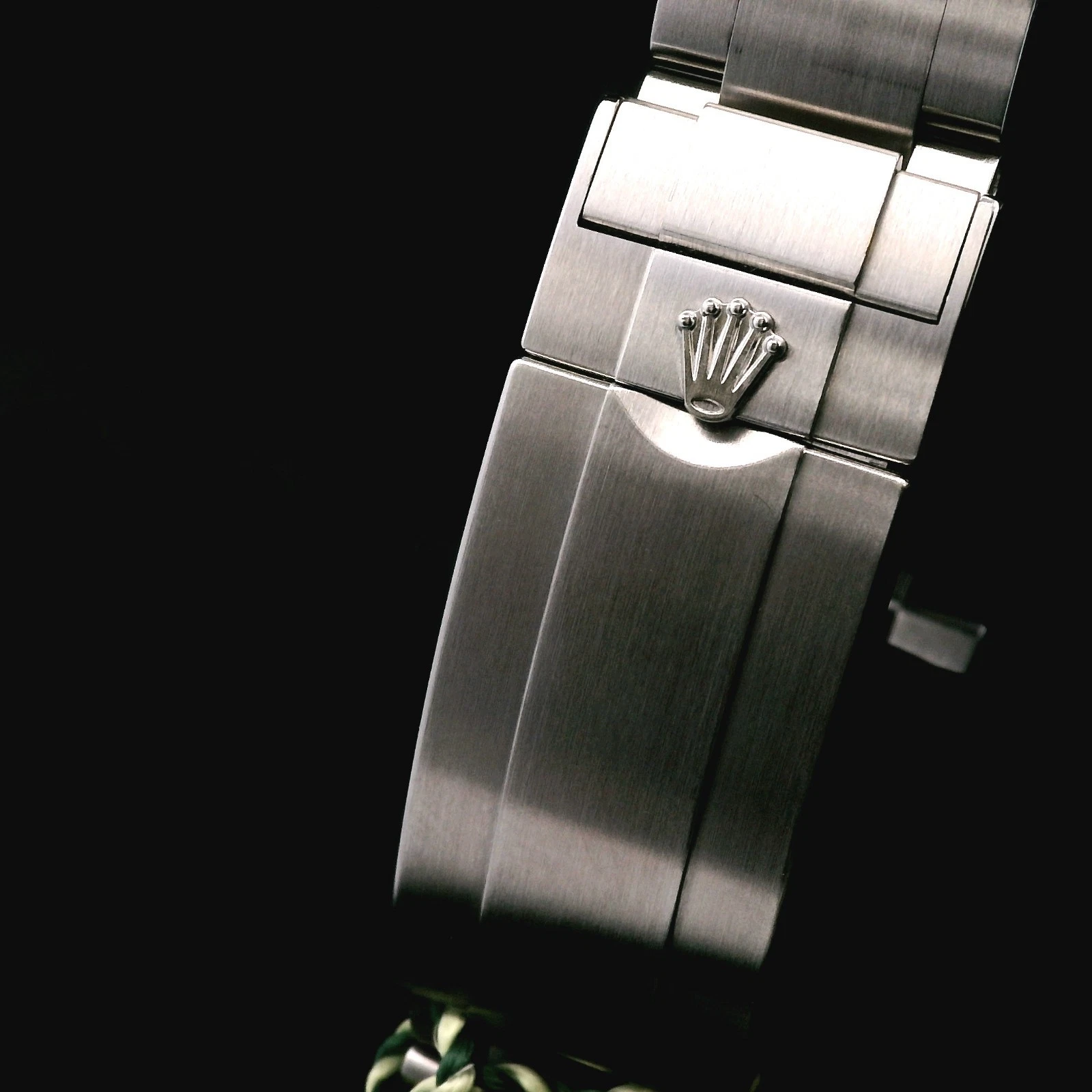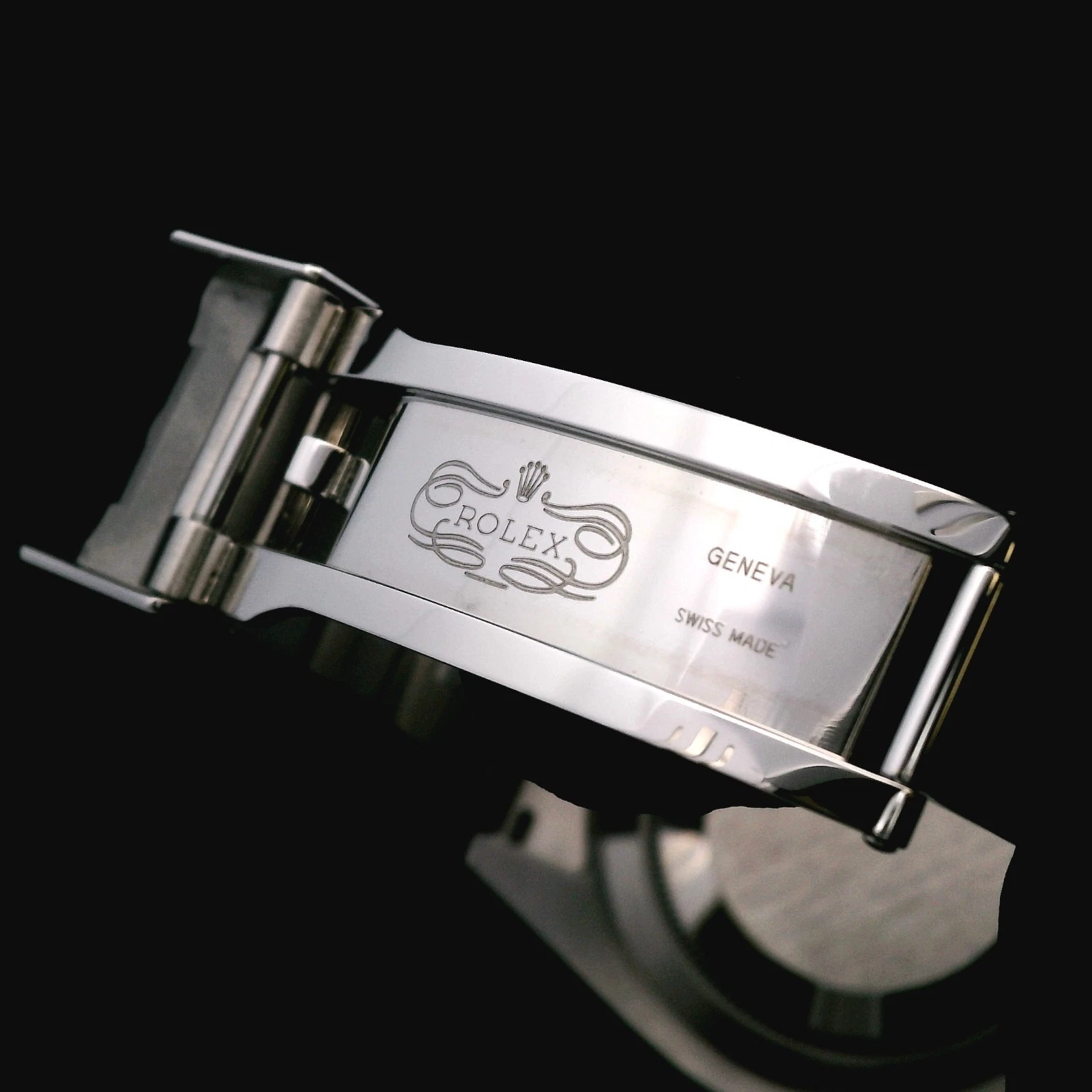 El artículo está completamente nuevo y nunca ha sido usado. Incluye la caja original de Rolex y etiquetas. No incluye papeles. La caja presenta algunas rayaduras leves por almacenamiento.