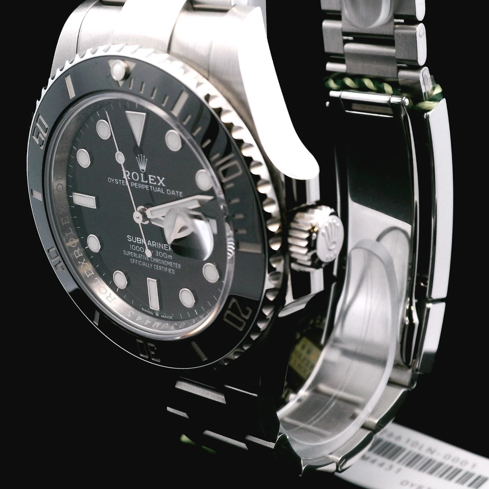 Este Rolex Submariner 126610LN cuenta con una caja de acero inoxidable de 41mm, con una elegante esfera negra y bisel de cerámica. El reloj está en condición nueva, nunca usado, e incluye su caja original de Rolex, etiquetas de fábrica y estuche. Aunque la caja presenta algunas rayaduras leves por almacenamiento, el reloj en sí no ha sido usado. Este reloj no incluye papeles. Un modelo muy codiciado, el Submariner combina la legendaria artesanía de Rolex con un diseño atemporal, convirtiéndolo en una adición excepcional para cualquier colección.