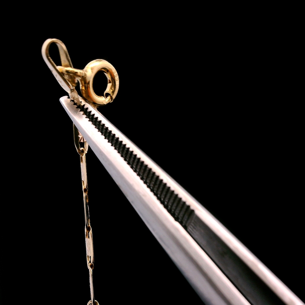 La longitud de la cadena es 18 pulgadas, con un peso total de 1.6 DWT (2.49 gramos).