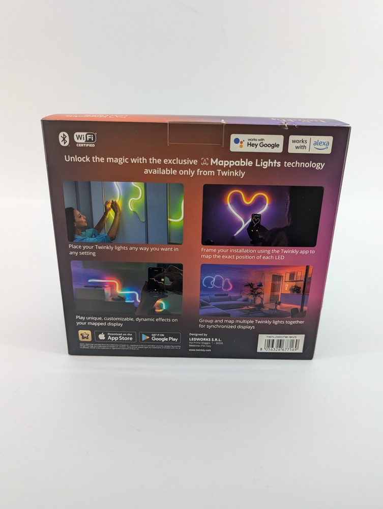 The Twinkly Flex is easy to install and includes mounting clips for secure placement on walls, ceilings, or furniture. Its sleek, modern design makes it a stylish addition to gaming setups, living rooms, or holiday decorations. Perfect for creating mood lighting or artistic displays, the Twinkly Flex RGB LED Tube combines cutting-edge technology with unparalleled versatility to transform any space into a visual masterpiece.