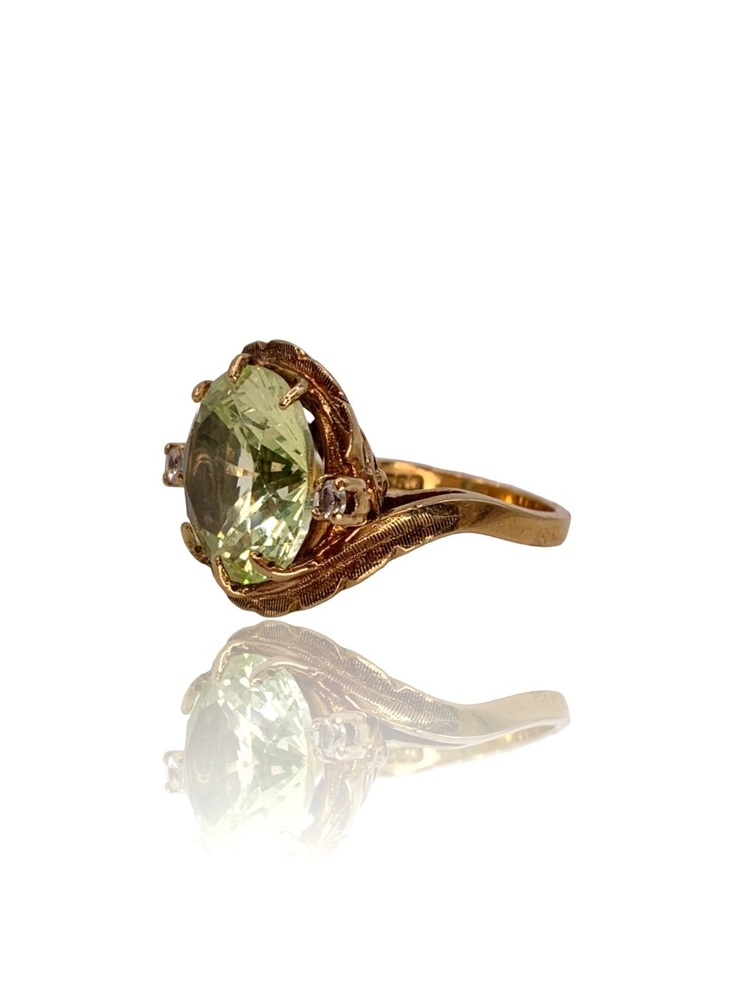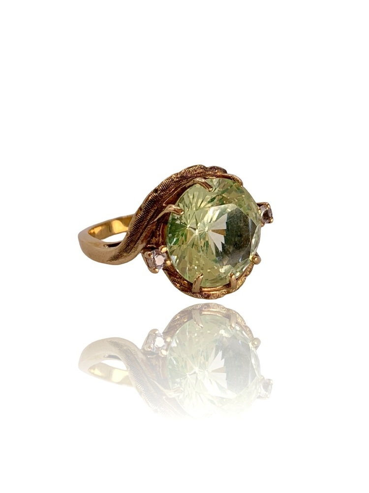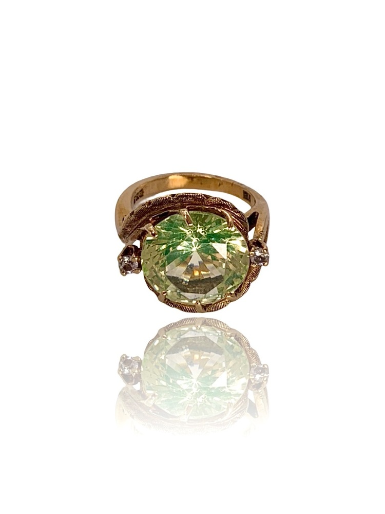 10KT – Size 7 (Ladies) – Resizing Available – Yellow Gold Ring – Large Green Stone w/ NON-Diamond Accents