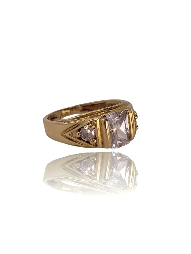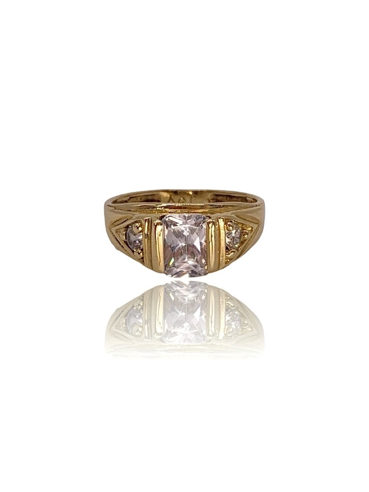 14KT – Size 8 (Men’s) – Resizing Available –  Yellow Gold Ring – Non-Diamond Rectangle Center w/ 2 Round Stones