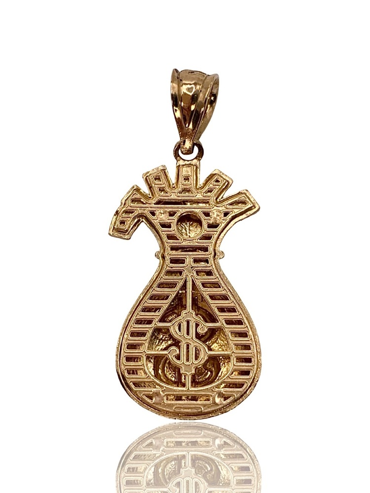 A stylish and meaningful gold money bag pendant, ideal for collectors or anyone who loves symbolic jewelry.