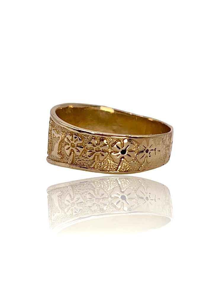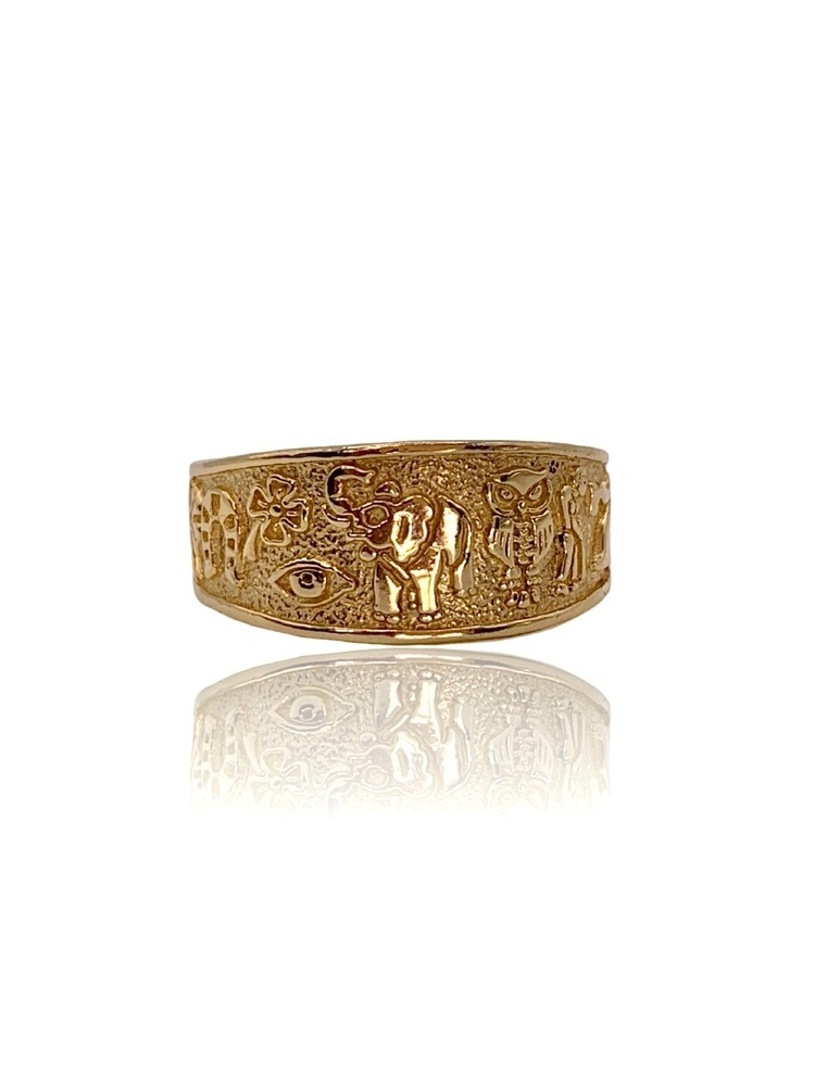 A stylish and symbolic gold ring band, perfect for gifting or adding a unique piece to your jewelry collection.