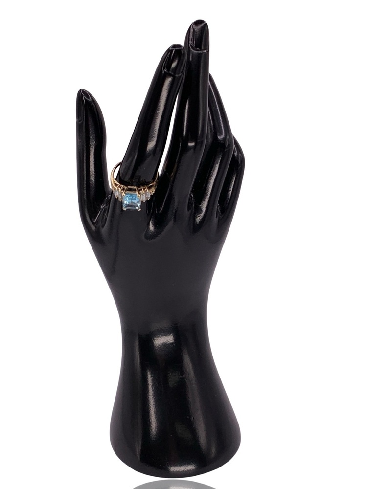 Size 10– Resizing Available – 2.82 DWT (4.38g) 14KT Yellow Gold Ladies Ring Blue Center Stone Step Design w/ 2 Tiny Diamonds
