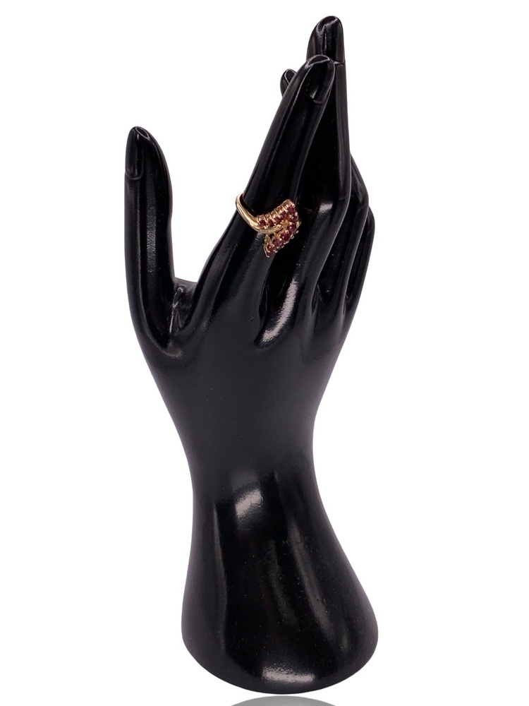 This elegant 10KT Yellow Gold Cluster Ring features a stunning arrangement of several red stones for a bold and vibrant look. Sized at 6, this piece can be resized for a perfect fit, making it a beautiful addition to any jewelry collection for daily wear or special occasions.