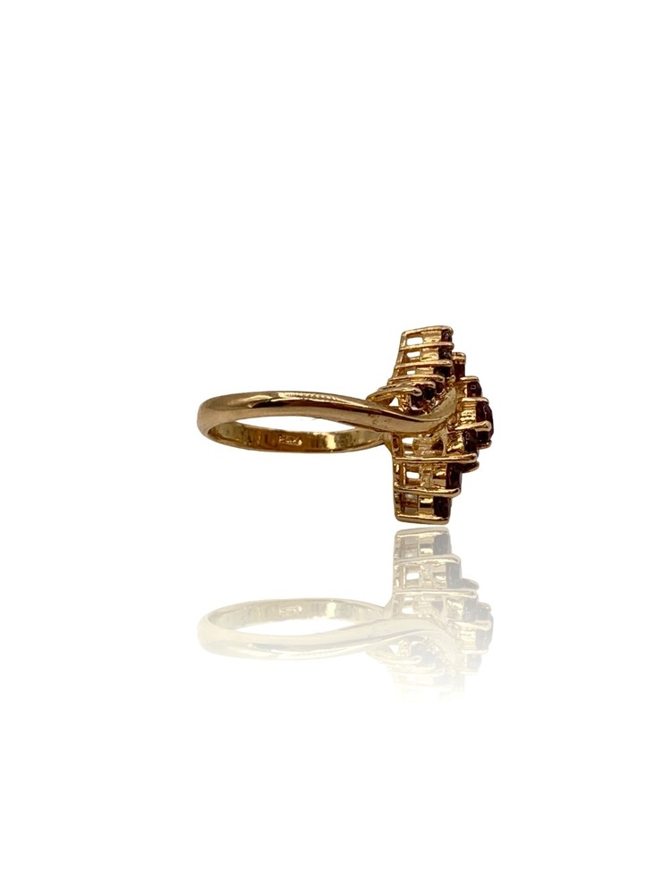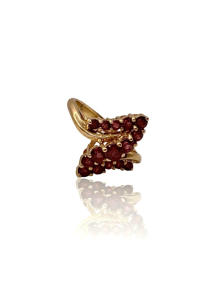 Size 6 – Resizing Available – 2.30 DWT (3.58g) 10KT Yellow Gold Ring – Cluster Design w/ Several Red Stones