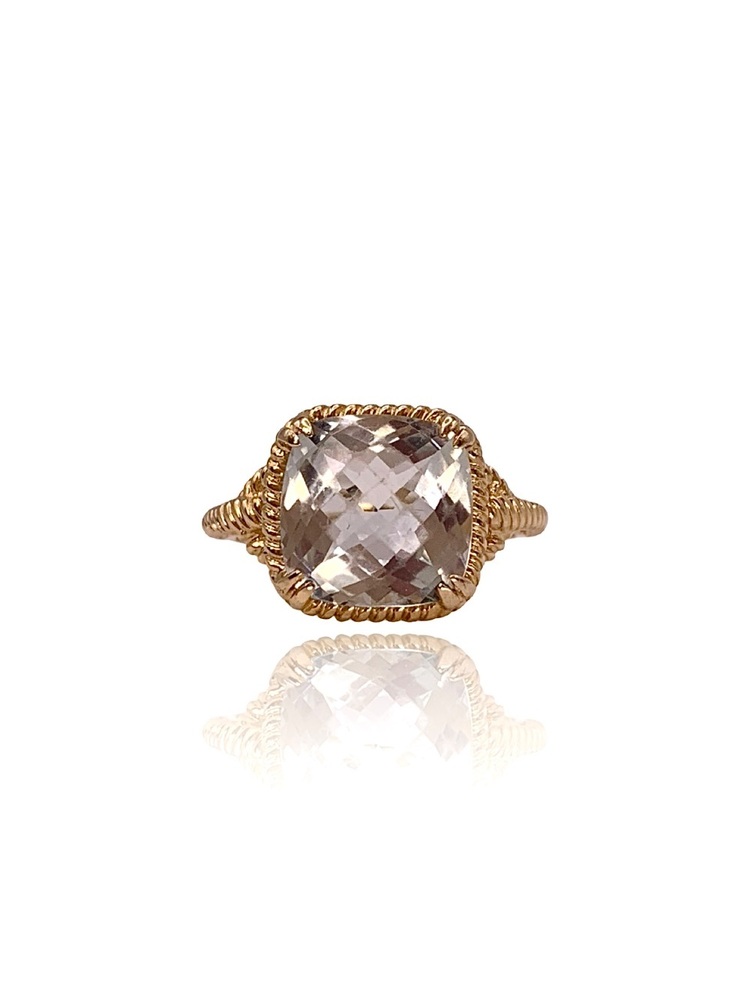 Size 6.5 – Resizing Available– 2.50 DWT (3.88g) 14KT Yellow Gold Ladies’ Ring – Large Light Green Stone w/ Rope Border