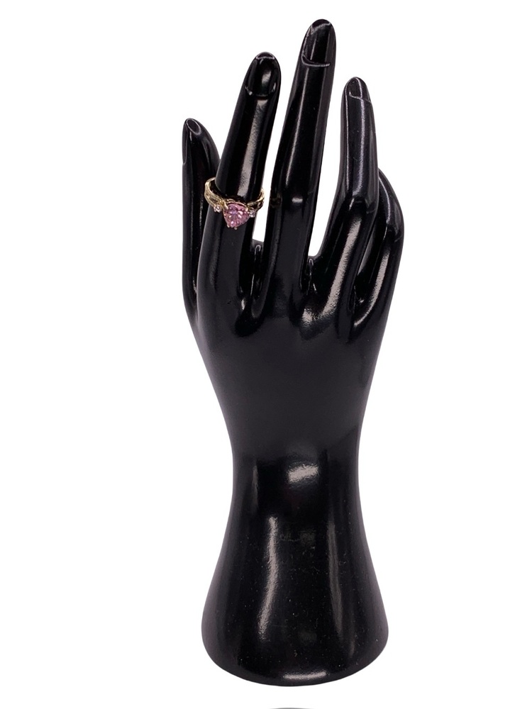 Size 6 (Resizing Available) – 1.79 DWT (2.79g) 10KT Yellow Gold Ring – Pink Heart Stone w/ 2 Non-Diamonds