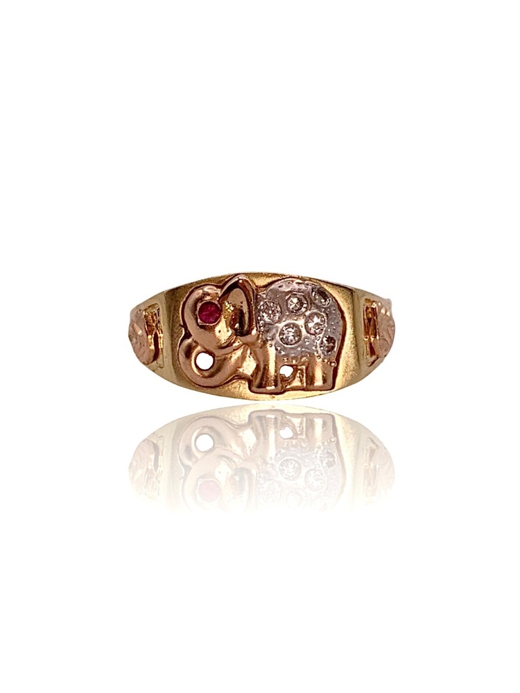 Size 7– Resizing Available – 2.76 DWT (4.29g) 14KT Yellow Gold Women’s Ring – Elephant Design w/ Red Stone Eyes & Non-Diamonds