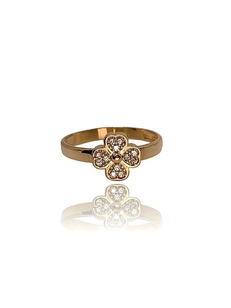 Size 8 (Resizing Available) – 1.22 DWT (1.90g) 14KT Yellow Gold Ring – 4-Leaf Clover Design