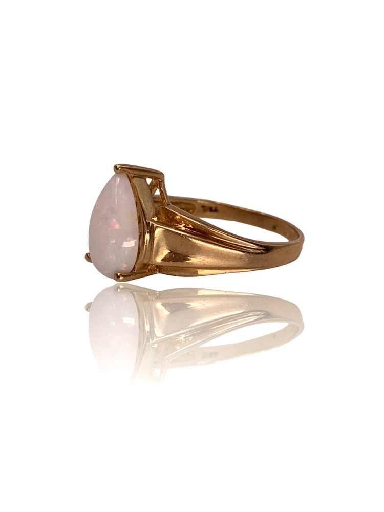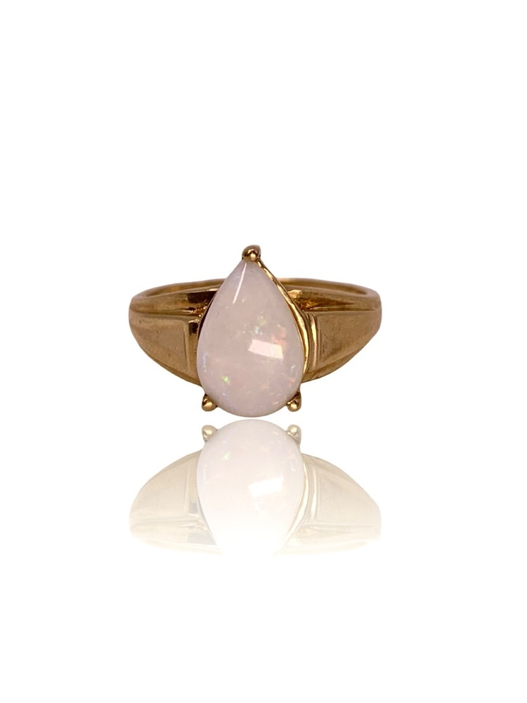 Size 8 – Resizing Available– 2.22 DWT (3.45g) 10KT Yellow Gold Ladies’ Ring – Pear-Shaped Opal