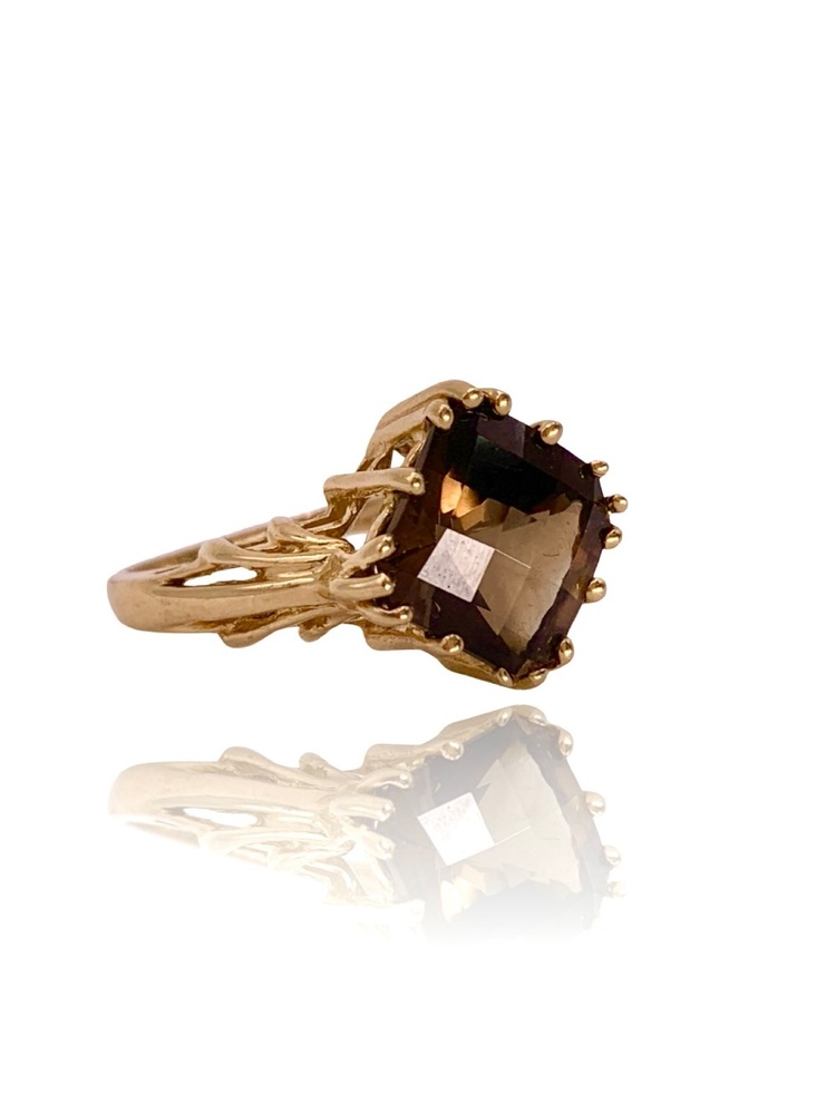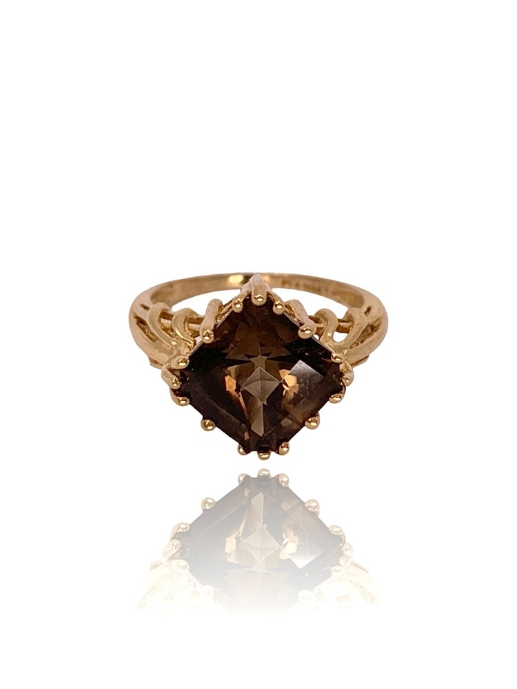 Size 8 – Resizing Available– 3.23 DWT (5.02g) 14KT Yellow Gold Ladies’ Ring – Weave Band w/ Brown Square Stone