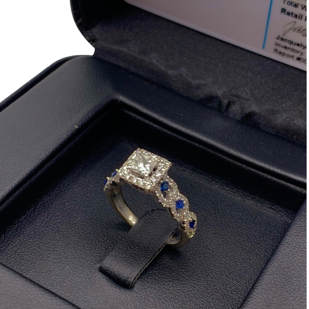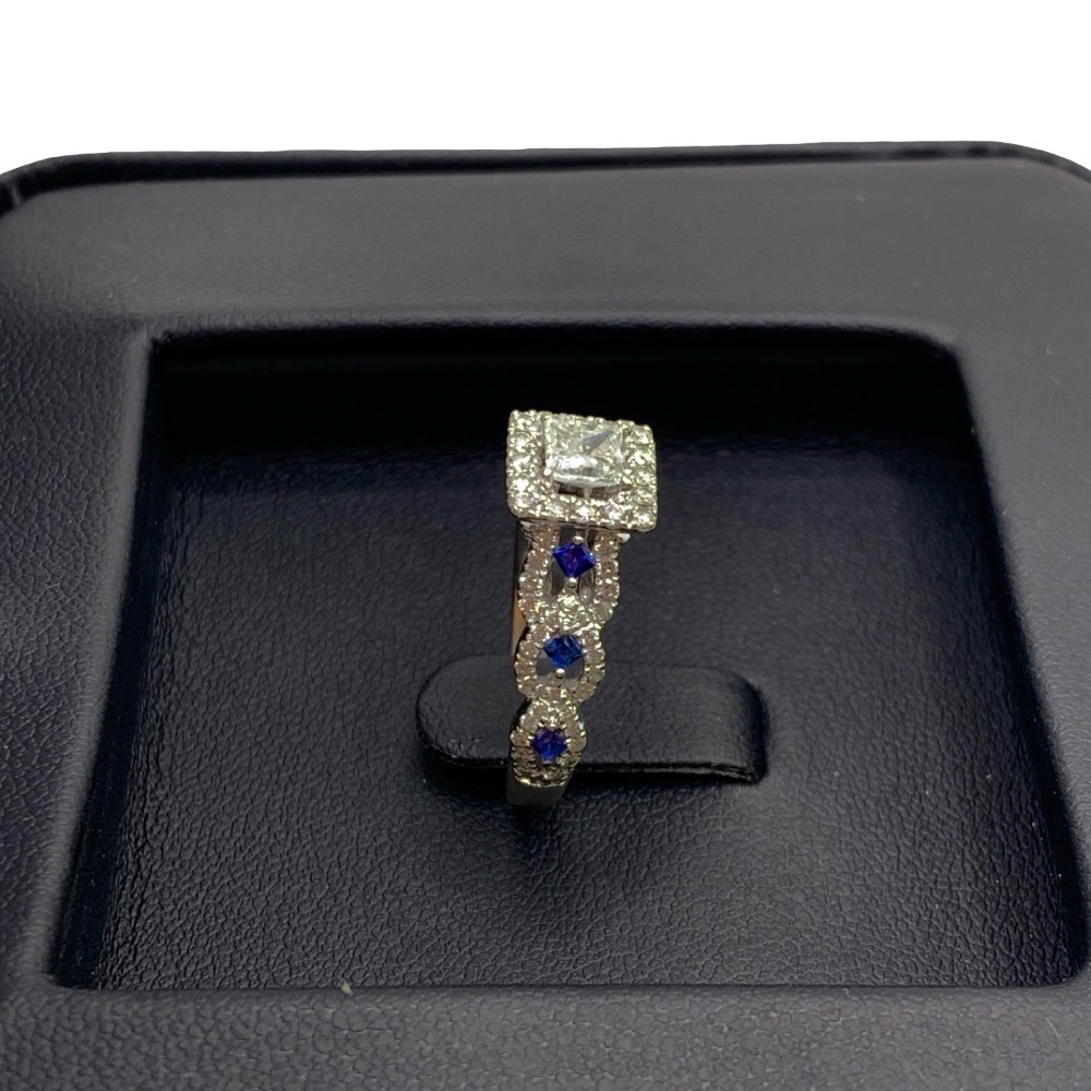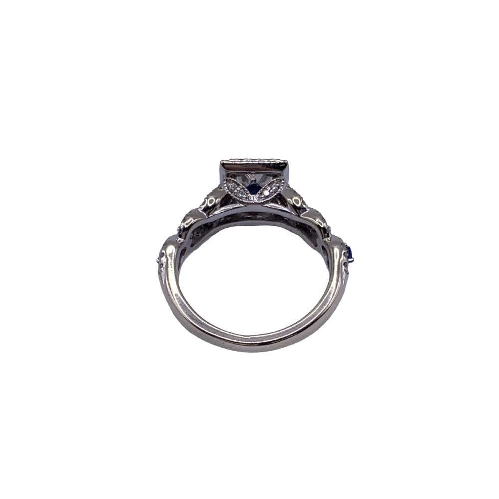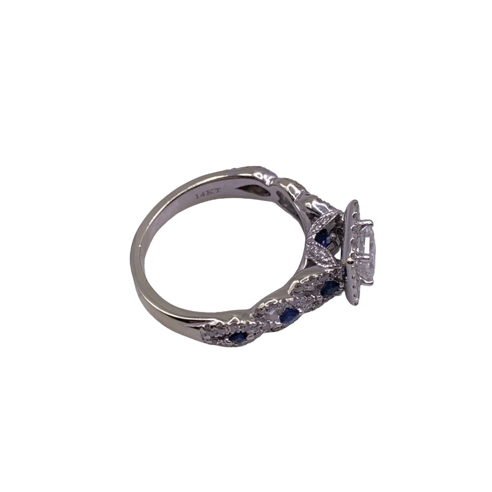 14K White Gold Ring – Jagi – Diamond & Blue Sapphire Halo – 0.93 cttw