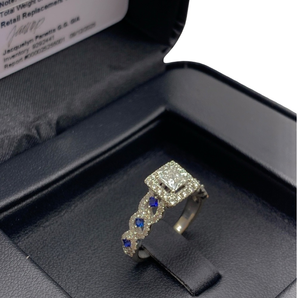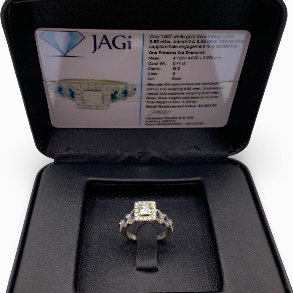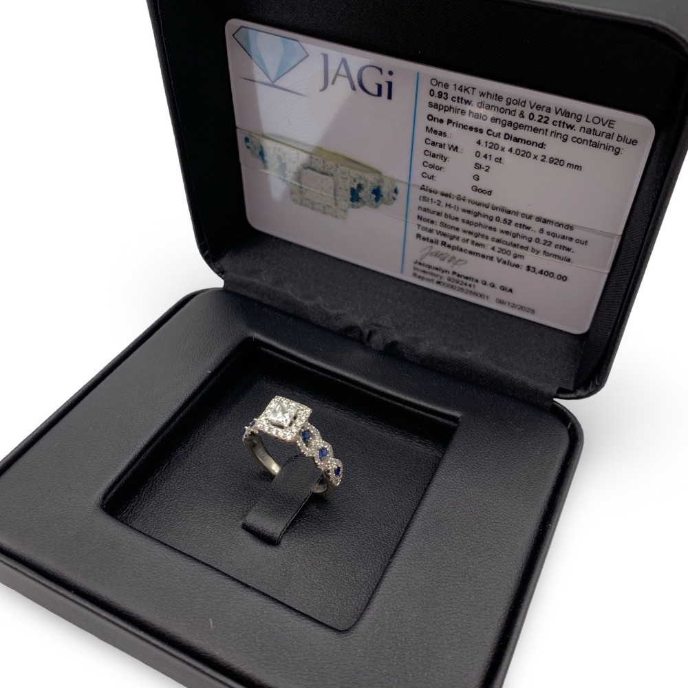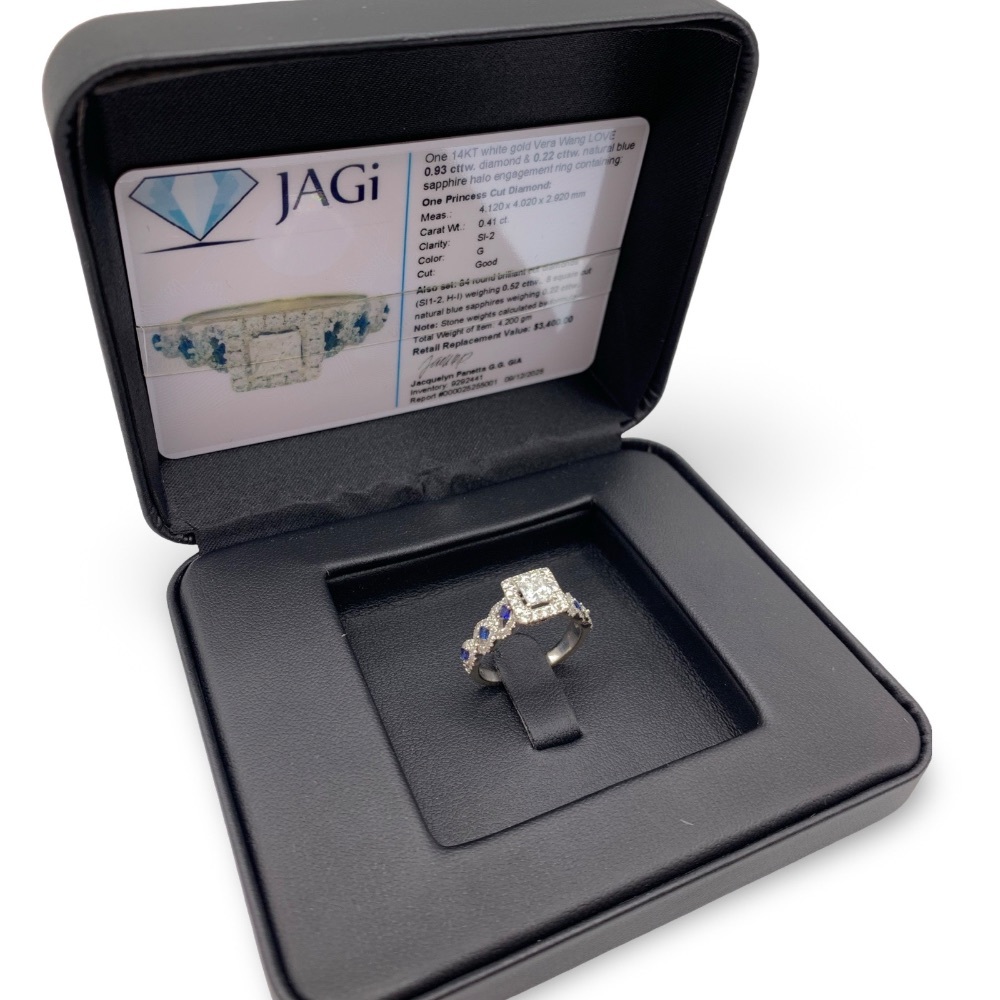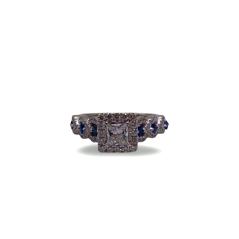 14K White Gold Ring – Jagi – Diamond & Blue Sapphire Halo – 0.93 cttw