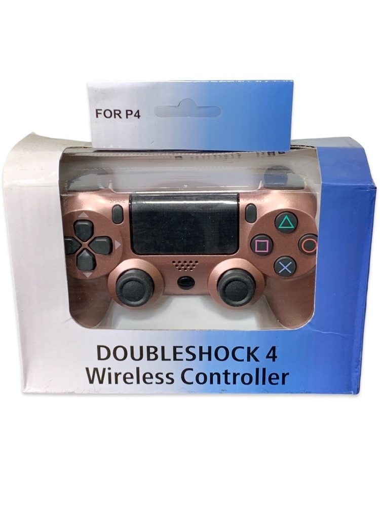 This aftermarket PS4 DoubleShock controller is in used condition and fully tested. It features a stylish rose-gold finish and comes with its wired USB cable and box. Shows normal cosmetic wear consistent with use.