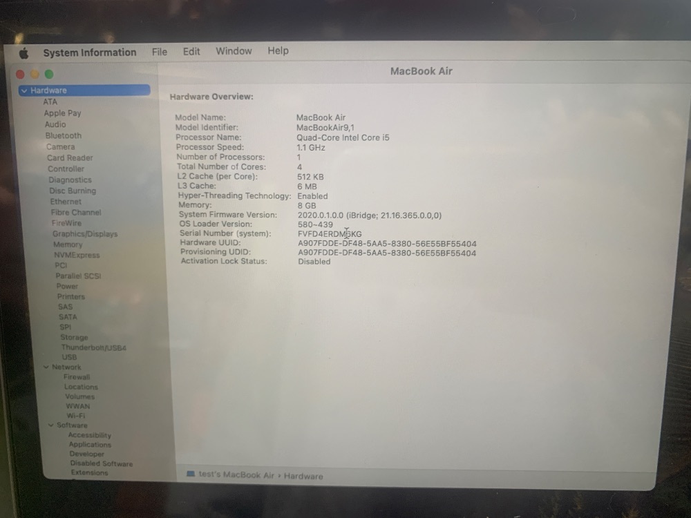 This listing is for a used 2020 Apple MacBook Air (Model A2179). The laptop is fully functional and shows signs of regular use. Please note that no charger is included.