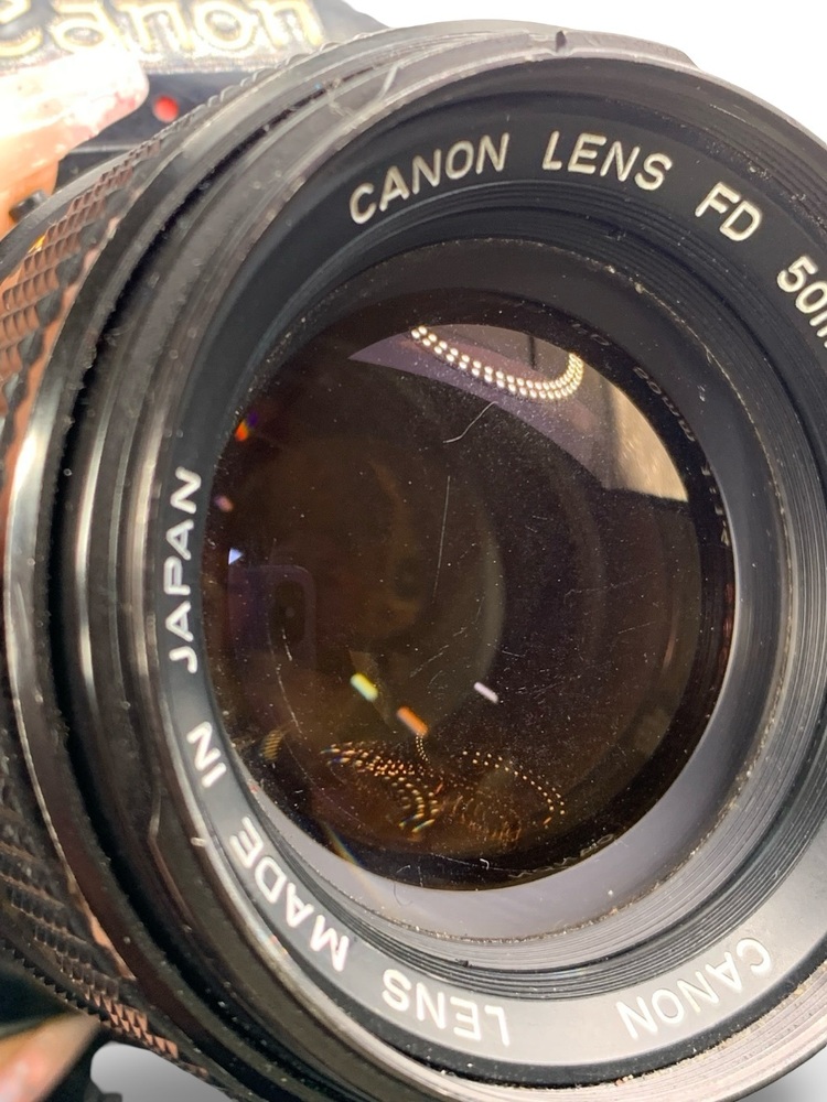 A classic Canon A-1 camera suitable for collectors, film enthusiasts, or those seeking a vintage SLR with a fast 50mm lens. Sold as shown, camera body and lens included.
