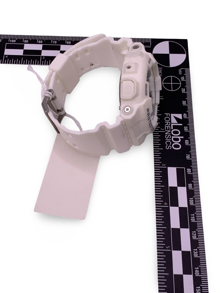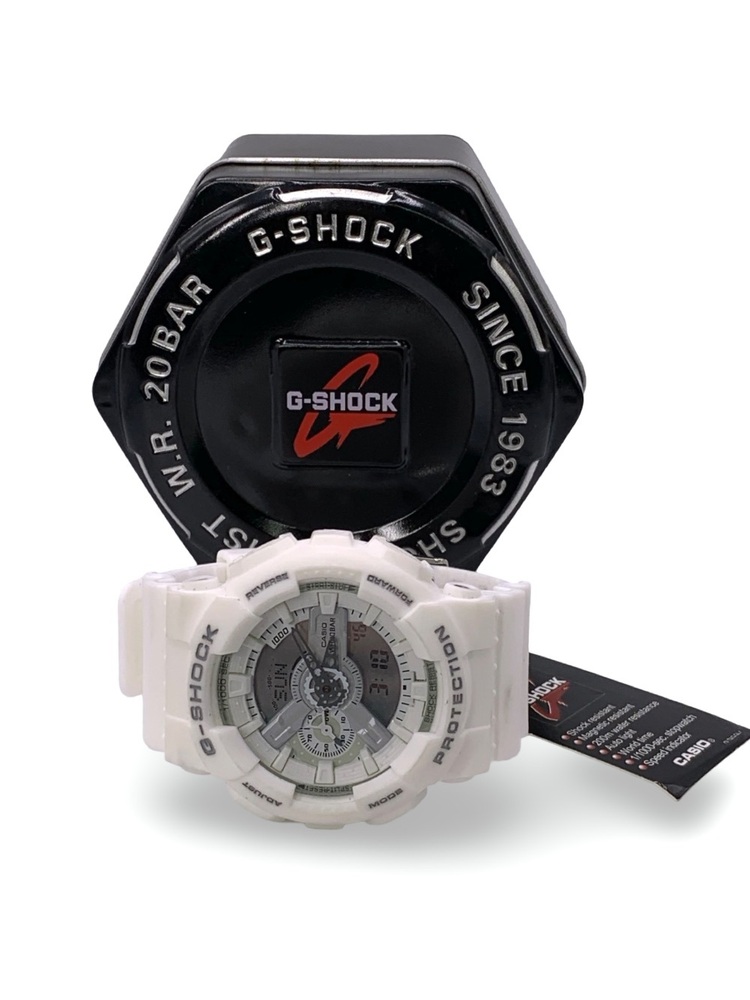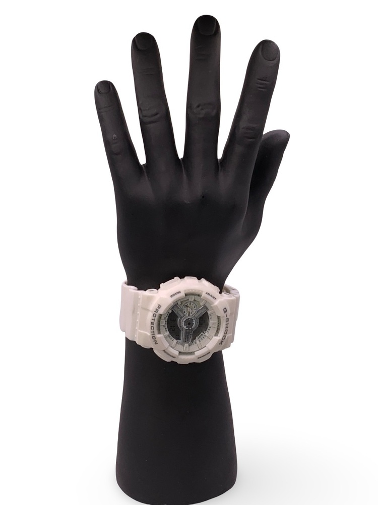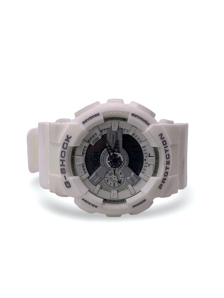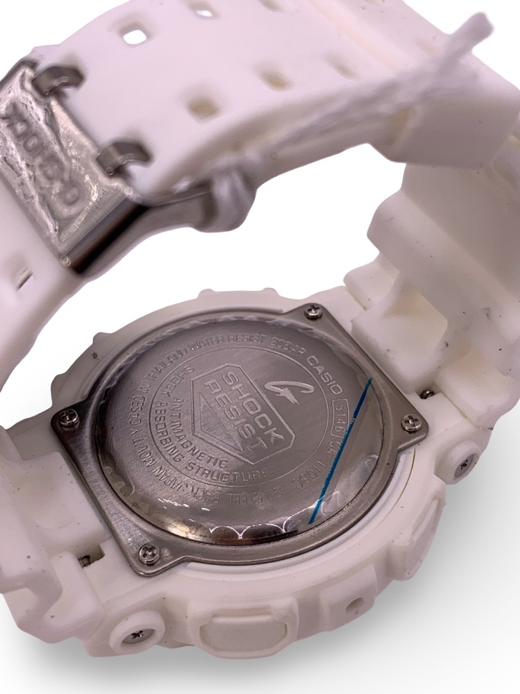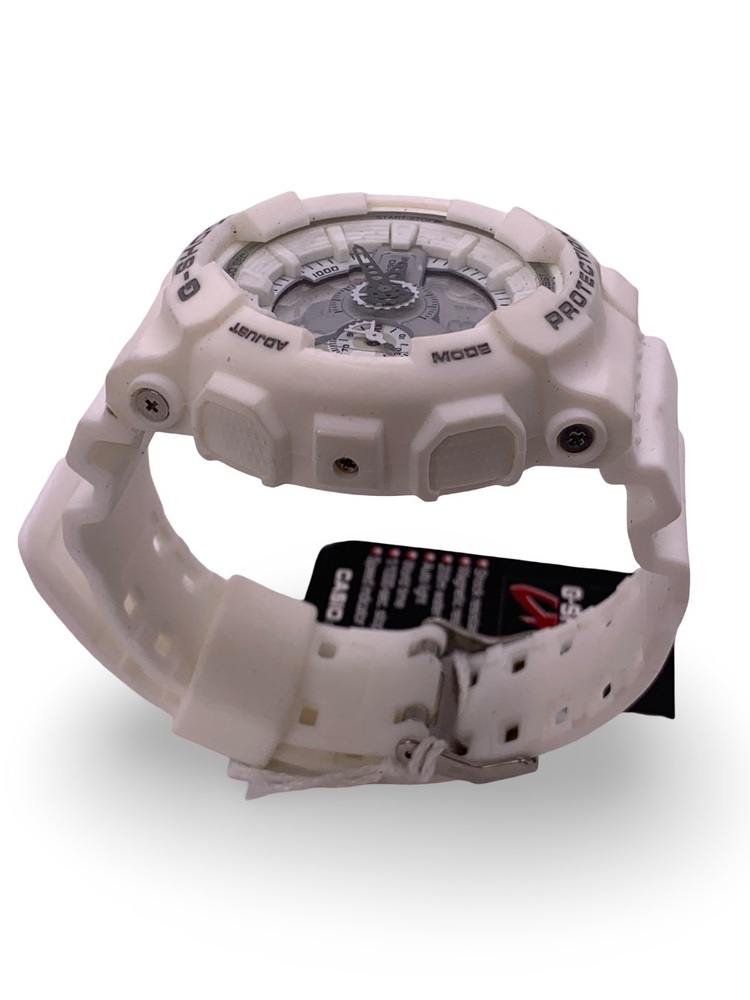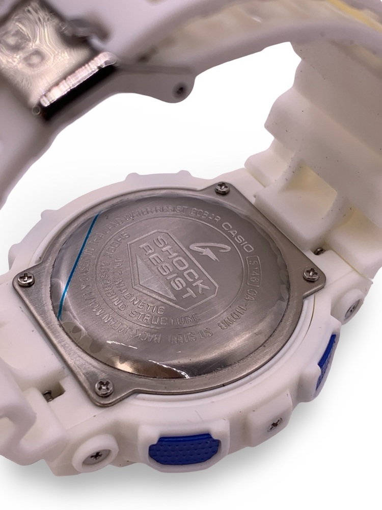 This listing is for a Casio G-Shock GA-110BC men’s wristwatch, featuring a white resin case and band, digital display, and the signature shock-resistant design.
