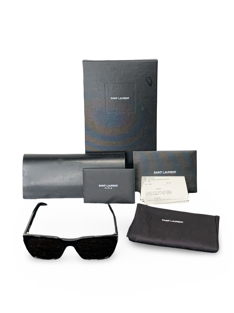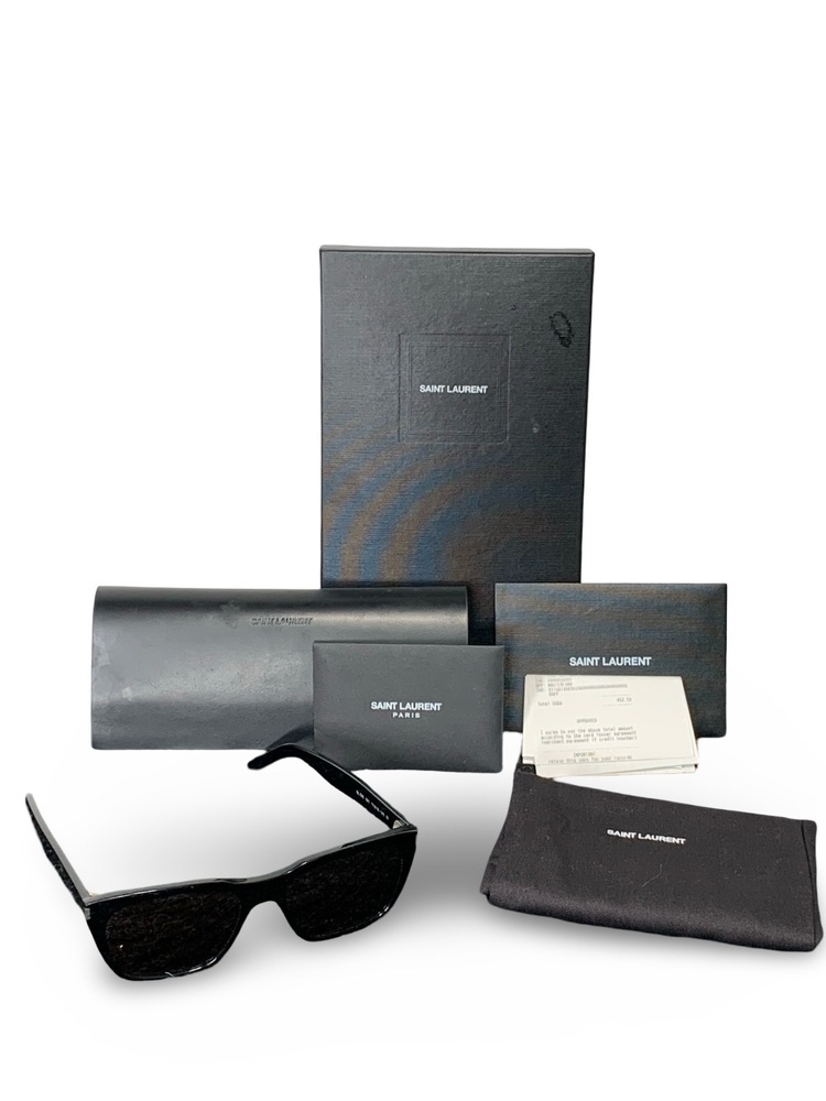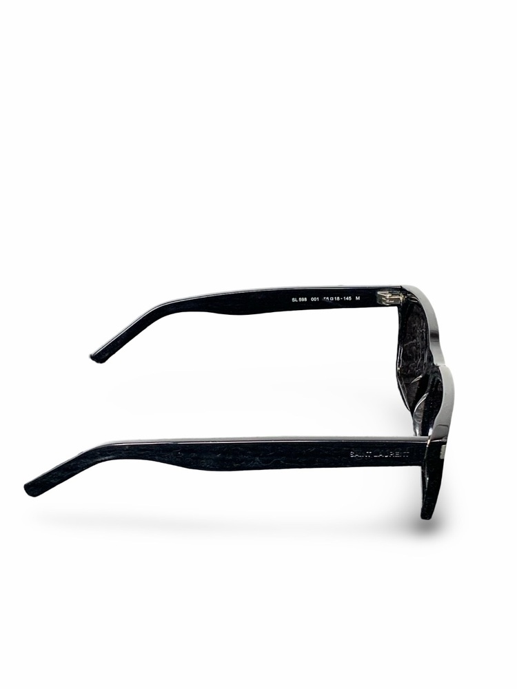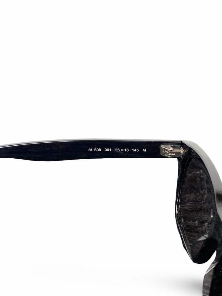 Used Saint Laurent SL 598 sunglasses in excellent condition. Comes complete with the original box, dust bag, case, tags, and receipt. Minimal signs of wear from gentle use. Authentic luxury eyewear with Saint Laurent branding on temples.
