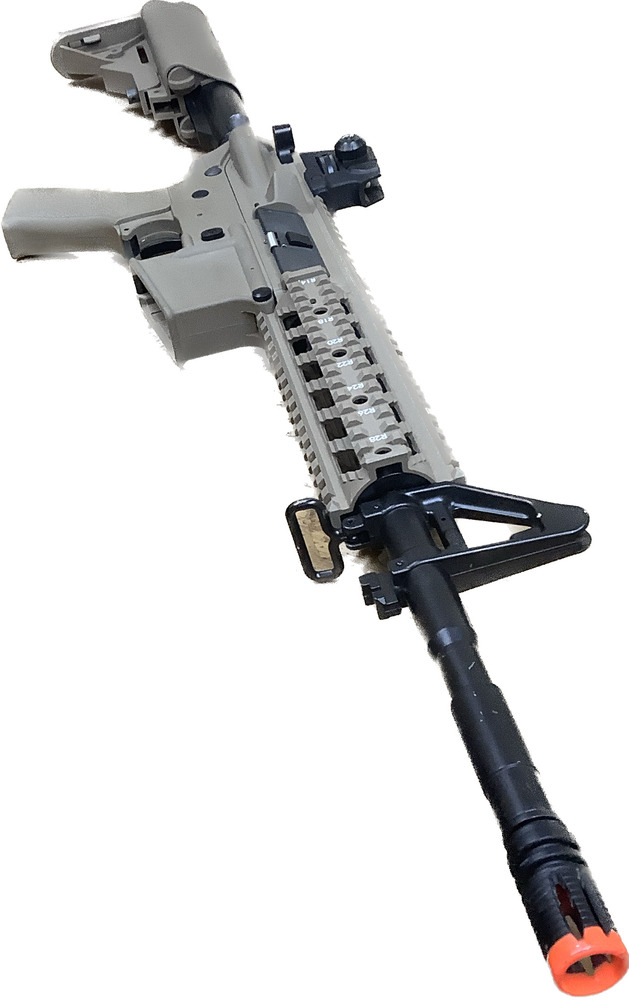 - This airsoft gun shows normal signs of wear from previous use, but is fully functional.