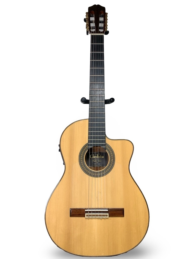 Equipped with a Fishman Prefix ProBlend preamp system, this guitar delivers a natural, balanced amplified sound ideal for live performances and recording. The ebony fingerboard and Spanish cedar neck provide smooth playability, while the craftsmanship and tonewoods reflect Cordoba’s dedication to authentic Spanish guitar tradition.