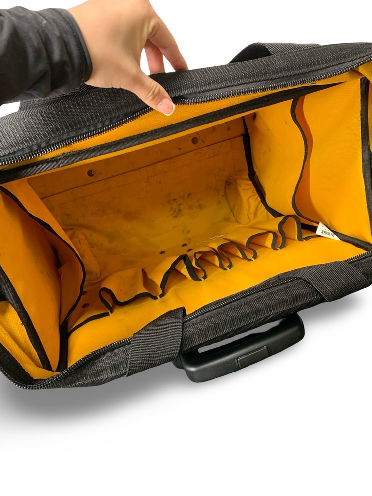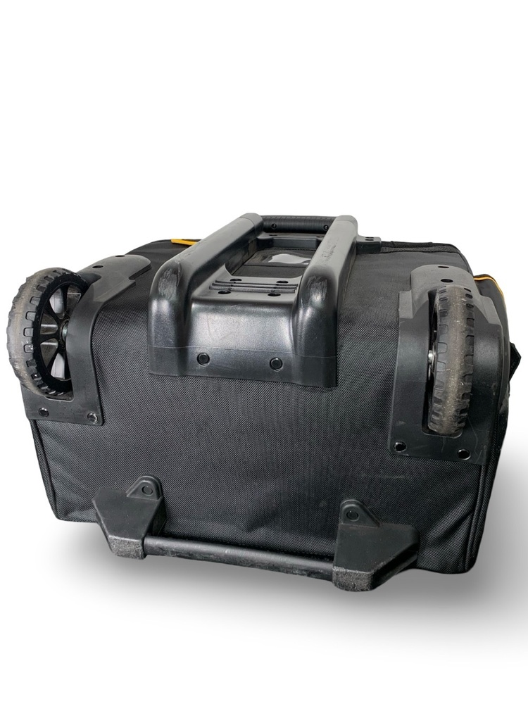 Shows signs of normal use, including light cosmetic wear from jobsite handling. Zippers, wheels, and telescoping handle function as intended. No major tears or structural damage observed.