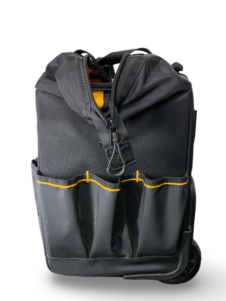 A solid, professional-grade rolling tool bag designed to handle demanding work environments while keeping tools organized and protected.
