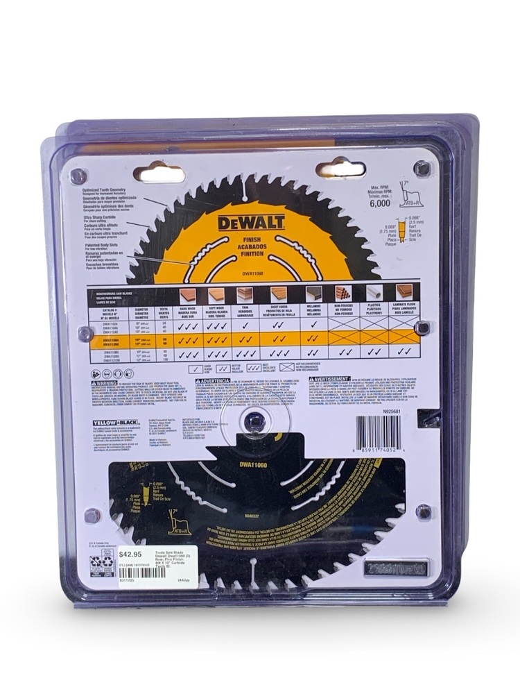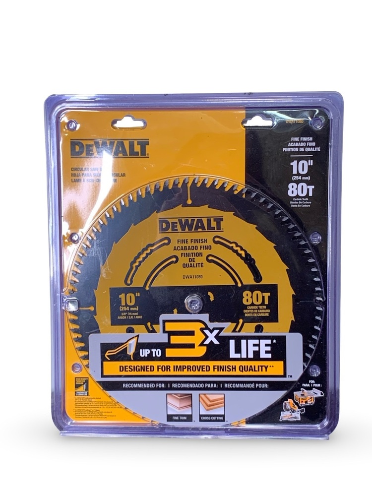 This listing is for a set of two brand-new DeWalt DWA11080 circular saw blades. These 10-inch, 80-tooth fine-finish blades feature carbide teeth for long life and smooth, precise cuts. Ideal for woodworking, trim work, cabinetry, and any application requiring ultra-clean finish cuts.