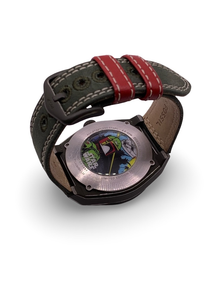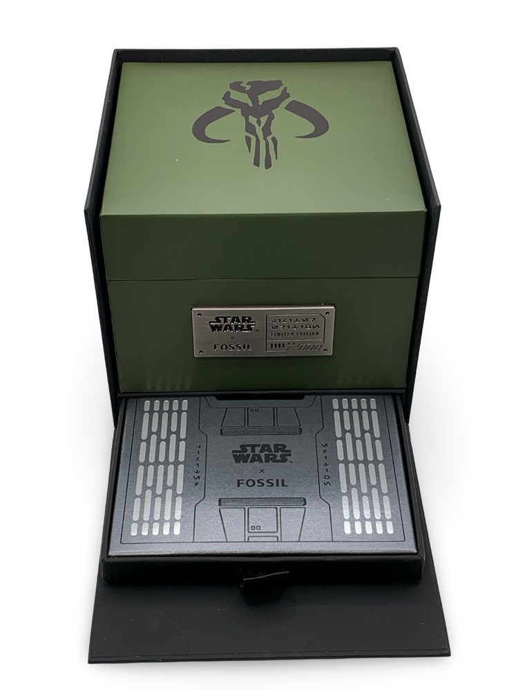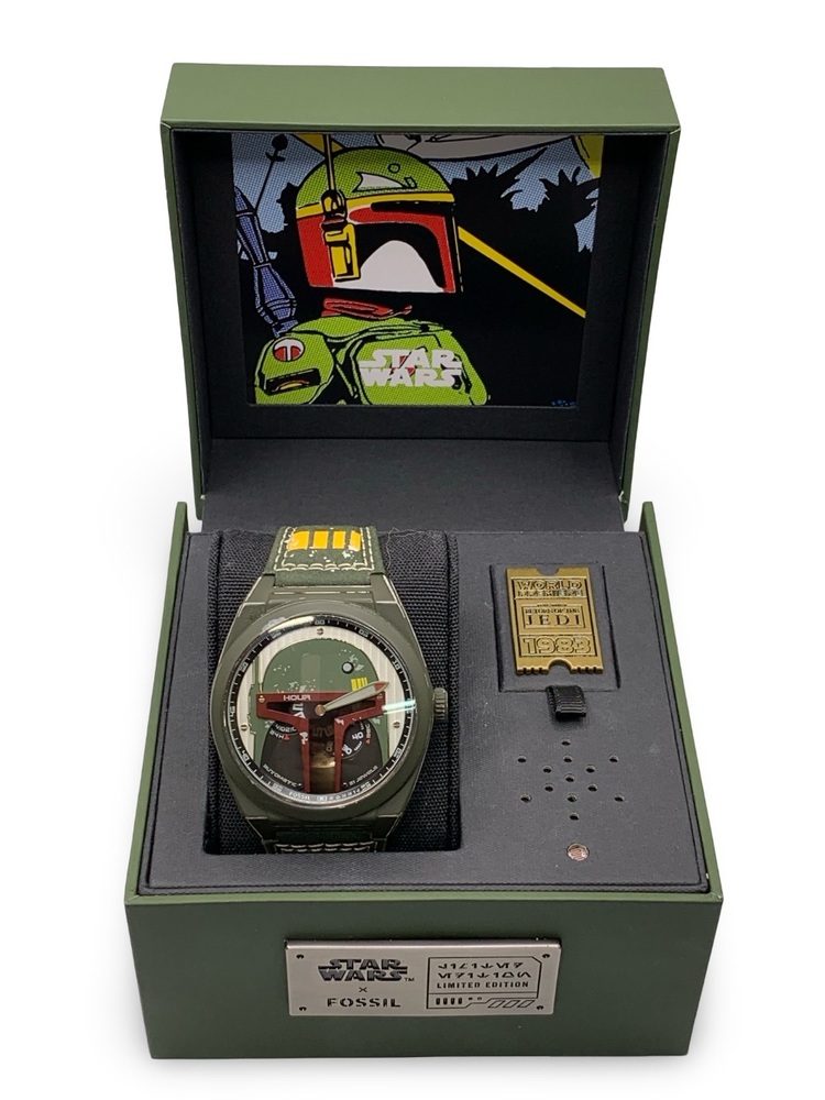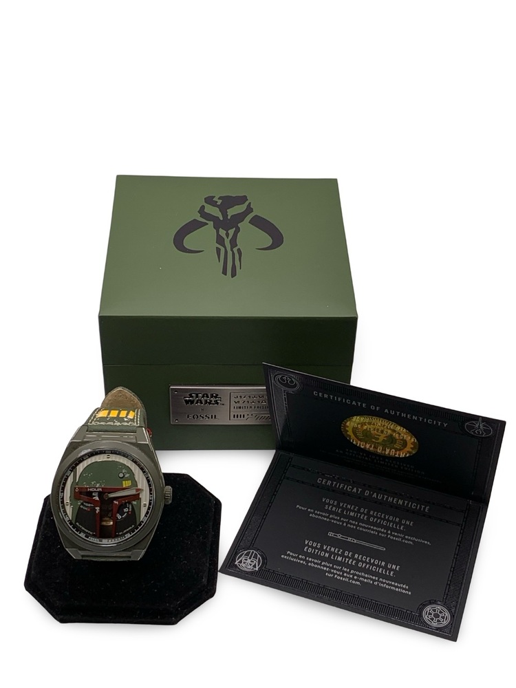 A rare and collectible Fossil x Star Wars watch—perfect for fans and collectors, featuring unique Boba Fett details and authentic limited-edition presentation.